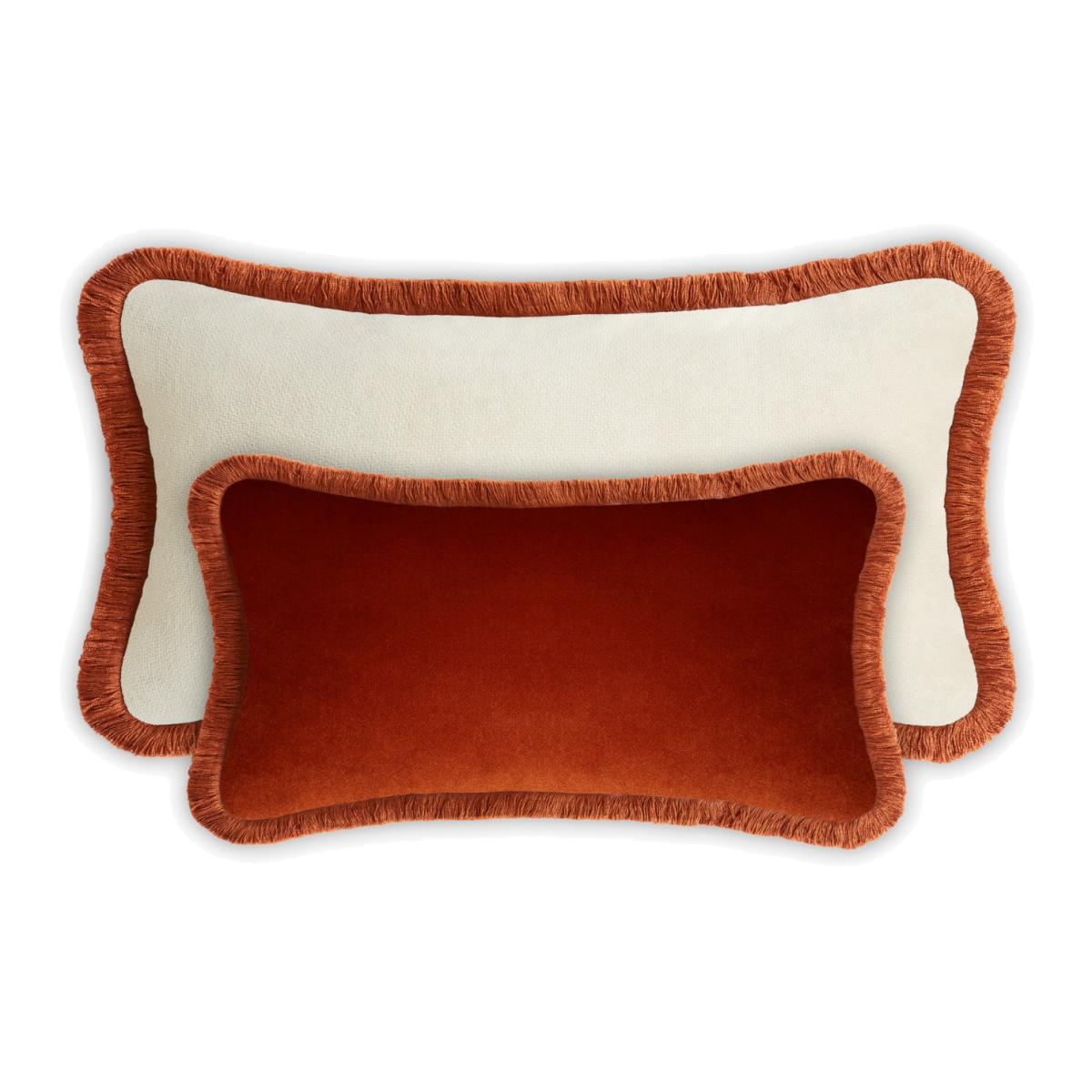 The contrasting chromatic scheme characterizing these couple of cushions lends it a distinct luxe yet restrained allure. It features soft padding in polyester fiber, while its rectangular silhouette is outlined by bold garnet cotton trimming outlining the light-beige velvet upholstery. The possibility to easily remove the cover simplifies its cleaning process. These accent pieces will make an eye-catching addition to a sophisticated living room, study or bedroom. All pieces are marked by simple versatility and charming hues that are easy to mix and match. Handmade in Italy. Fabric: Velvet Padding: 100% Polyester Dry wash Hand Wash 40° Handmade in Italy.