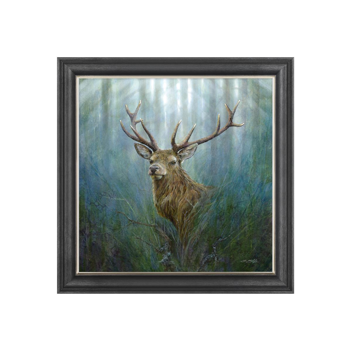 The Red Deer Stag Framed Art shows a fleeting moment between you and nature, captured in the frame. Bring a piece of the wilderness into your home today. Why you'll love it. Skilful brushwork breathes life into the portrait. A natural yet bright palette that works well with many styles. The amazing print quality captures every brushstroke and detail. Reproduced from original artwork by Chris Sharp. Housed in an elegant dark grey frame with champagne silver detailing. Hand finished with care for Furniture Village. What you need to know. A paper print on an MDF back board. Metal hanging fitting with a nylon cord. Hand-finished with an acrylic gel. Made in the UK. Dimensions. Width: 96 cm (38 in). Depth: 5 cm (2 in). Height: 96 cm (38 in).
