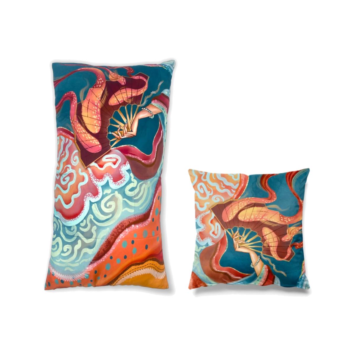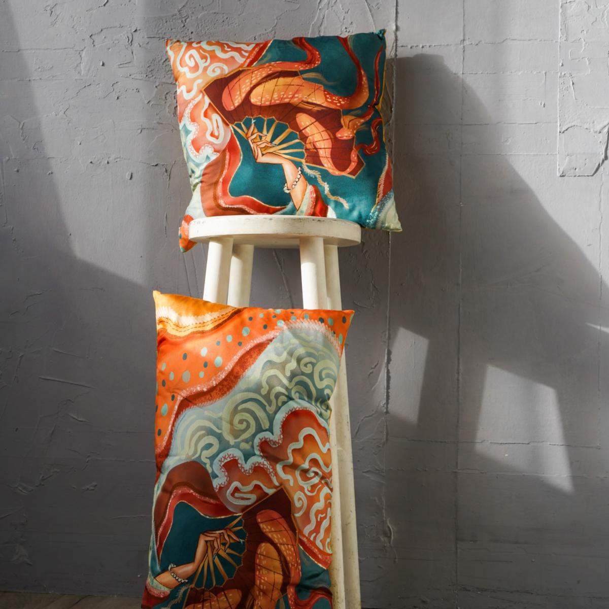The Red Fan print cushion set is a vibrant addition that works well in both contemporary and eclectic interiors, adding a pop of colour and visual interest. I love how the bold, illustrative pattern can serve as an eye-catching feature on a neutral sofa or bed, bringing a lively touch without overwhelming the space. To style it effectively, I’d suggest pairing these cushions with more subdued tones or textures to let the pattern stand out, and arranging them with other textured or solid cushions for a balanced look. Their silk fabric also offers a subtle sheen, making them a luxurious yet versatile choice for adding personality to your living or bedroom setups.
