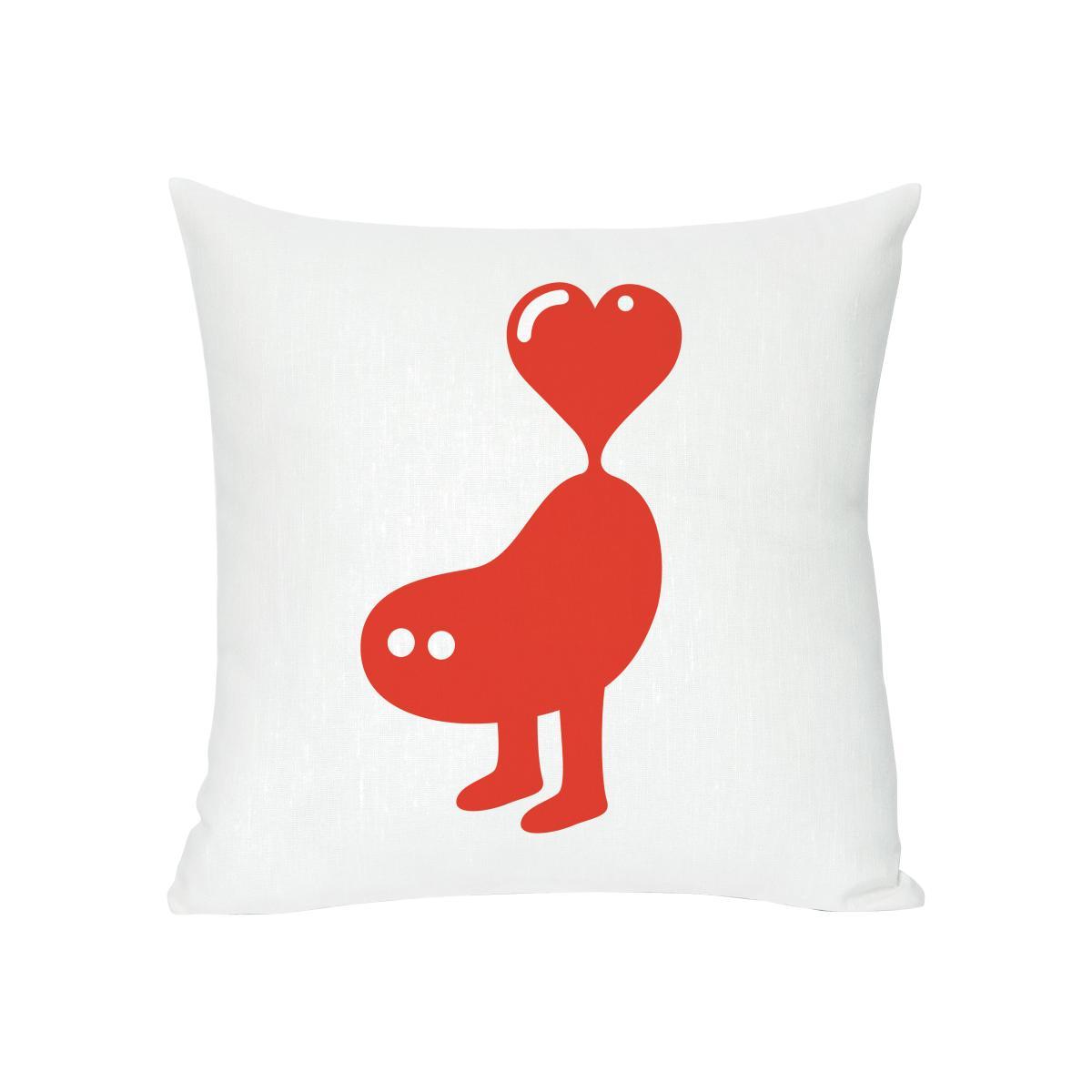 Red heart Cushion - Screen printed cushion made of linen & cotton by Domestic White/Red