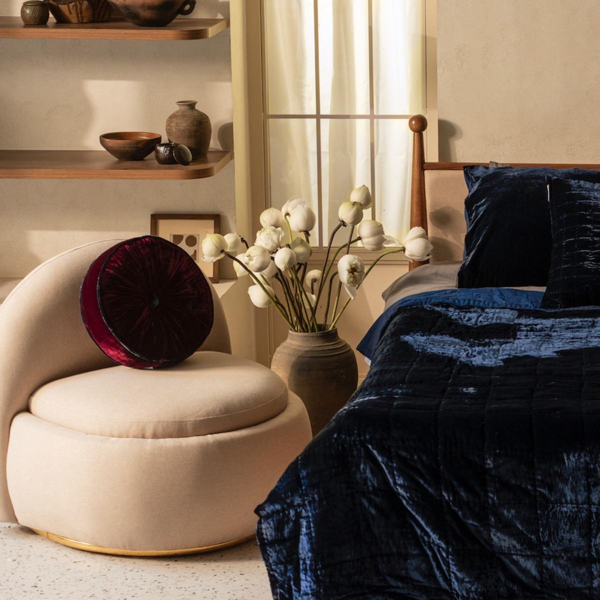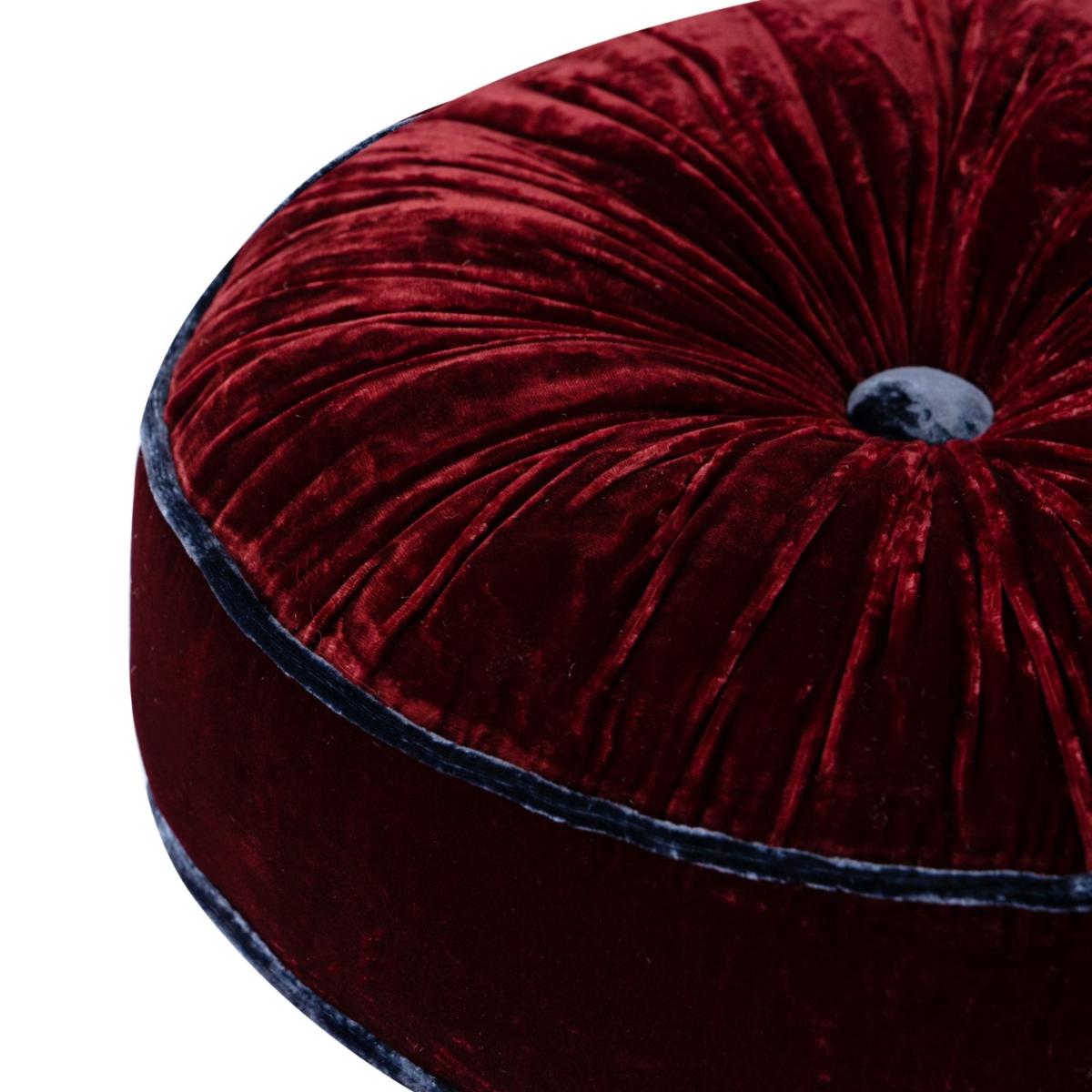 Holiday Edition for this season with contrast velvet pipeline ! Add a touch of exotic with this pumpkin lush Velvet Round cushion to your existing pillow assortment in various shades. Comes pre-filled. Diameter 35cm As the cover is not removable, we recommend spot cleaning only with a clean, damp cloth. Cover: Silk Velvet ( 65% Silk, 35% Polyester) Inner: Polyester