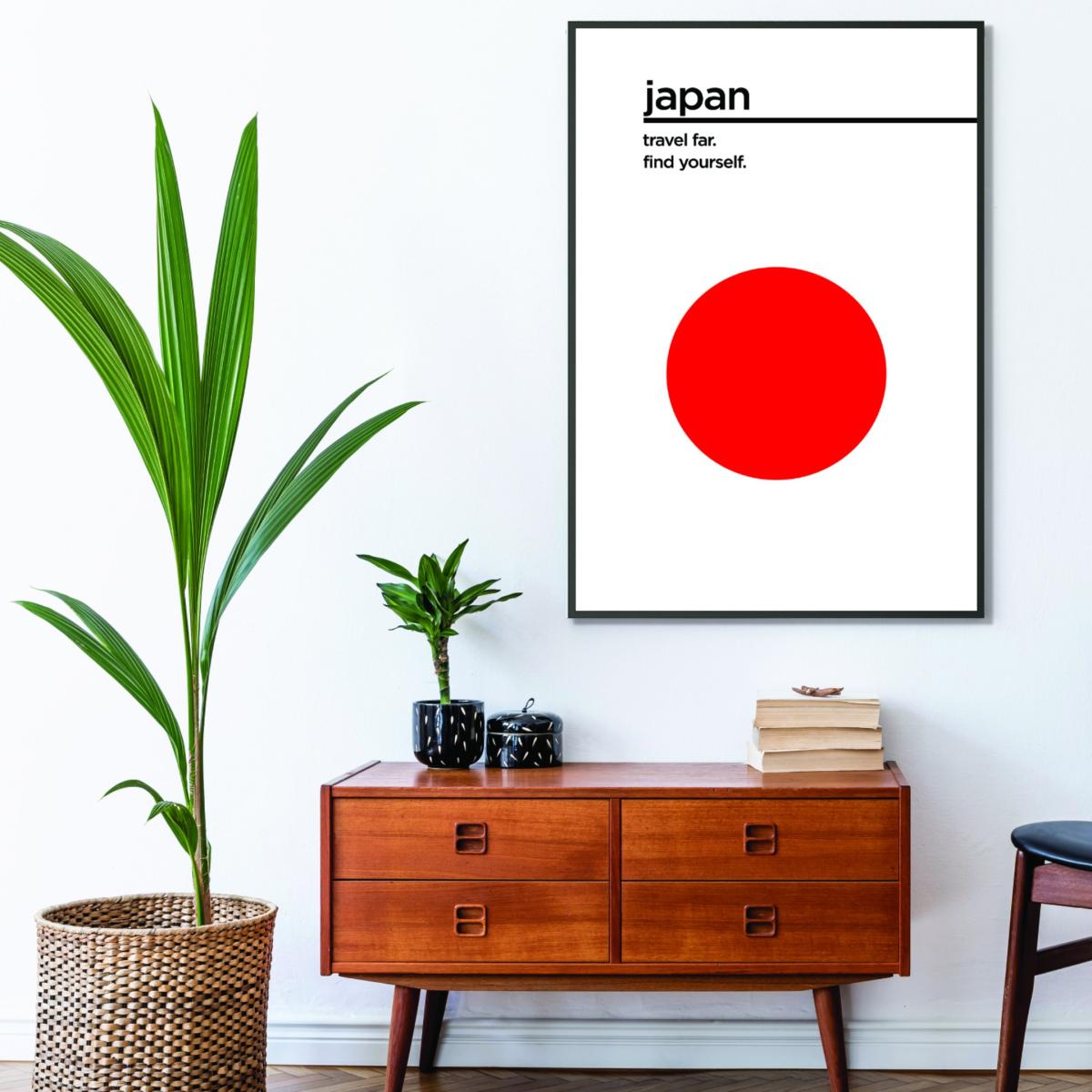 This travel poster is a great statement piece that combines minimalism with bold colour, making it versatile for various interiors. I love how its clean design and strong red circle can complement both modern and eclectic styles. It works particularly well in spaces that benefit from a touch of colour - think neutral living rooms, bedrooms, or even a stylish office. For styling tips, consider pairing it with simple, understated frames to let the poster shine, and hang it at eye level for maximum impact. It's a practical choice for adding visual interest without clutter, and its understated aesthetic can tie together different colour schemes within a room.