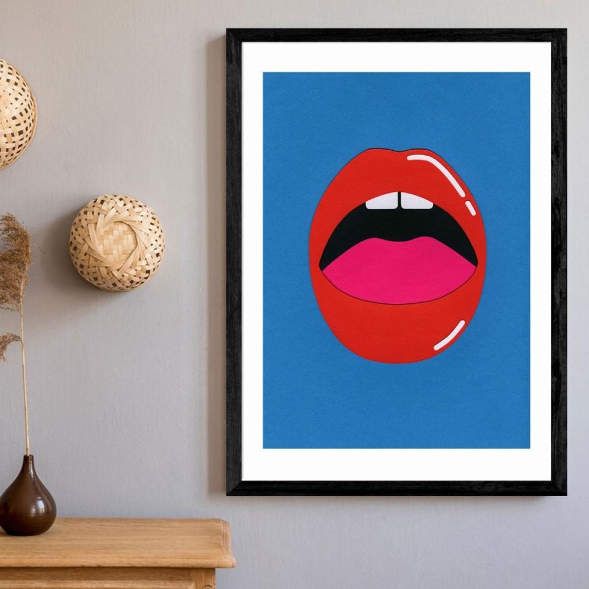 I love this pop art piece for its bold, statement-making design. The vivid red lips on a striking blue background create a vibrant focal point that’s perfect for adding a touch of contemporary edge to any room. It works well in eclectic and modern interiors, especially when paired with minimalist furniture or when you want to inject colour into a neutral space. For practical styling, consider hanging it above a sofa or bed, where it can catch the eye, and keep surrounding décor simple to let the artwork really pop. The A1 size makes it versatile enough to fill a blank wall without overwhelming the space. Overall, it's a fun, stylish pick that’ll bring personality and a little pop art flair to your interior.