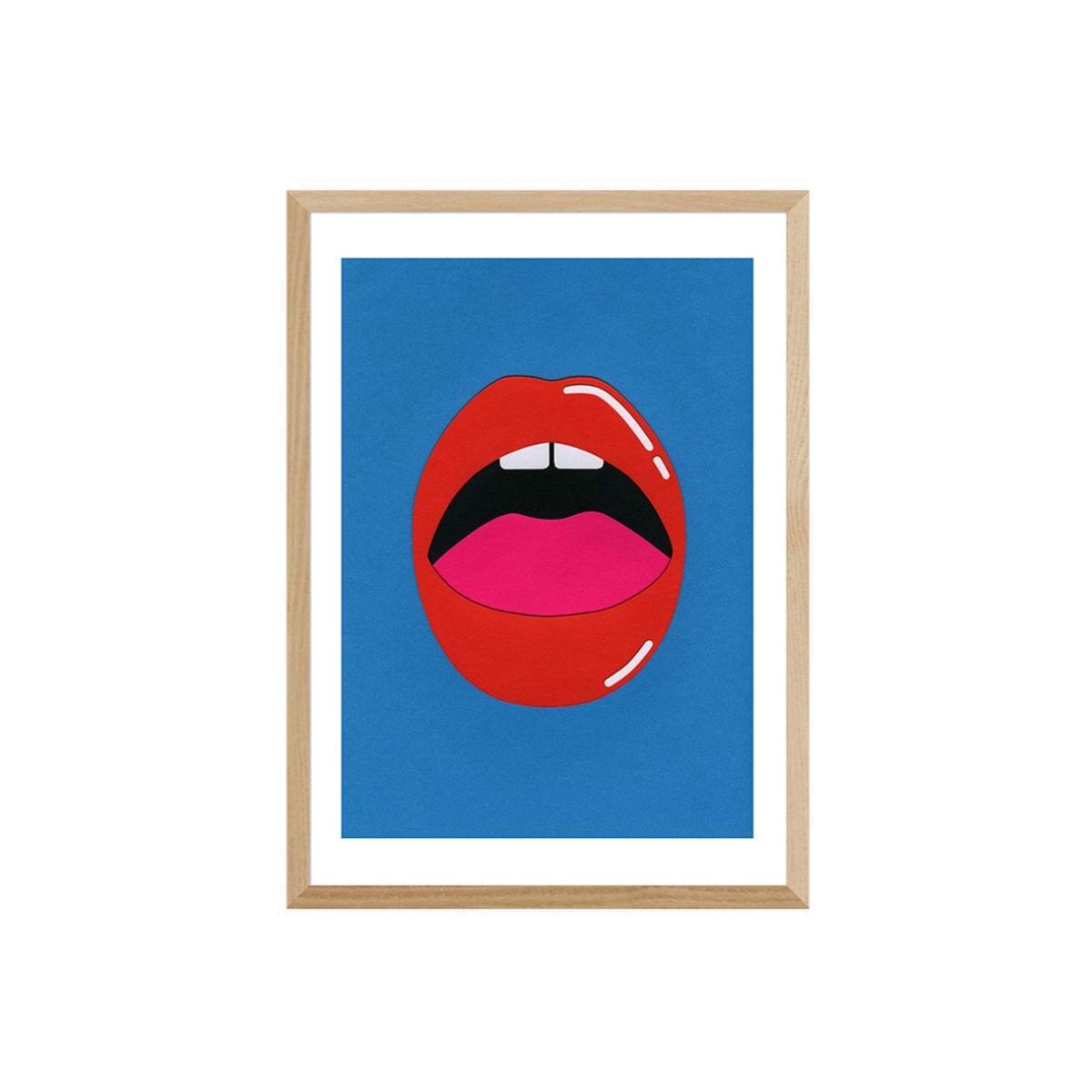 Red Lips, Pop Art Print Colour: Oak, Size: A1