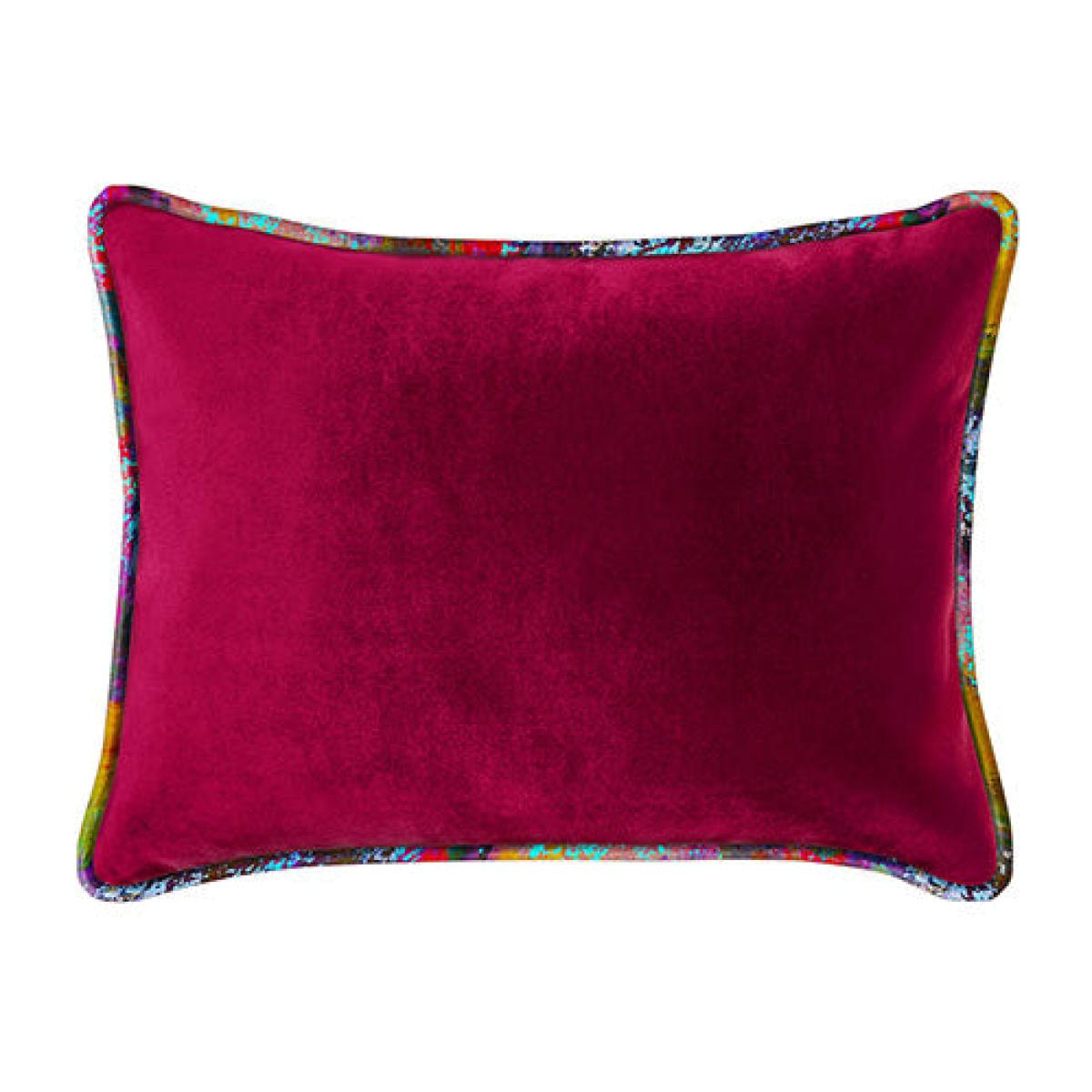 The Luxe is a beautiful, statement-making designer pillow that creates a beautiful base for layering - or works equally well on its own. This fuchsia velvet pillow is unique to Smith Hönig and is designed to complement many pillows and accessories. Plush cotton velvet in a rich, jewel-toned magenta velvet is hand-cut in our studio, hand sewn, and welted with our own exclusive Vintage Gypsum fabric in shades of purple, yellow, red, green and more. Spot Clean.