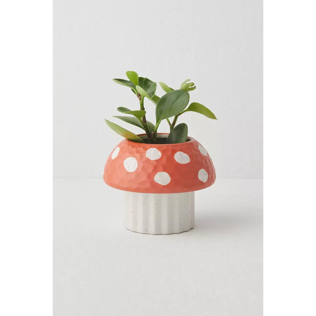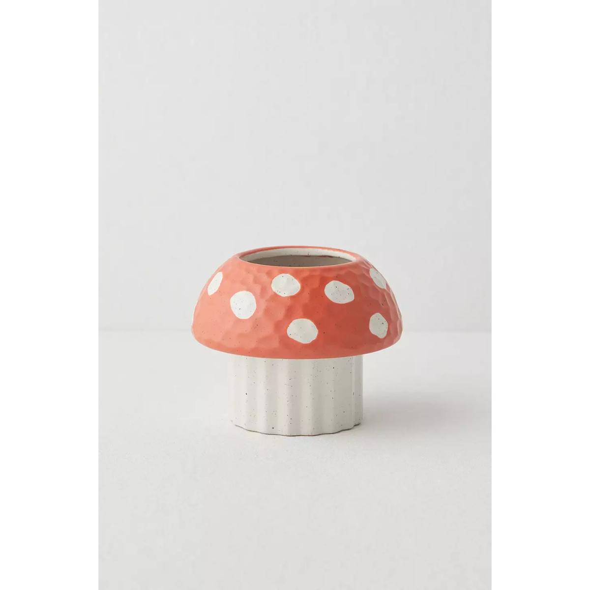 Groovy mushroom-shaped planter! Sculpted from ceramic and finished with a polka-dotted glaze at the top, this planter is perfect for succulents or any of your other littlest green friends. **Content + Care** \- Stoneware \- Wipe clean