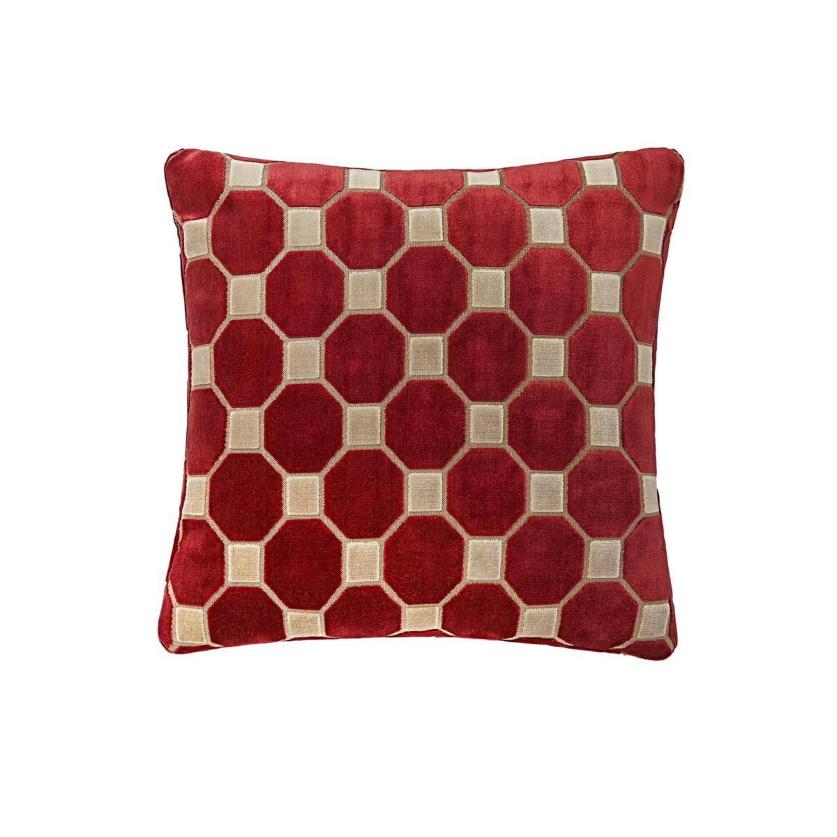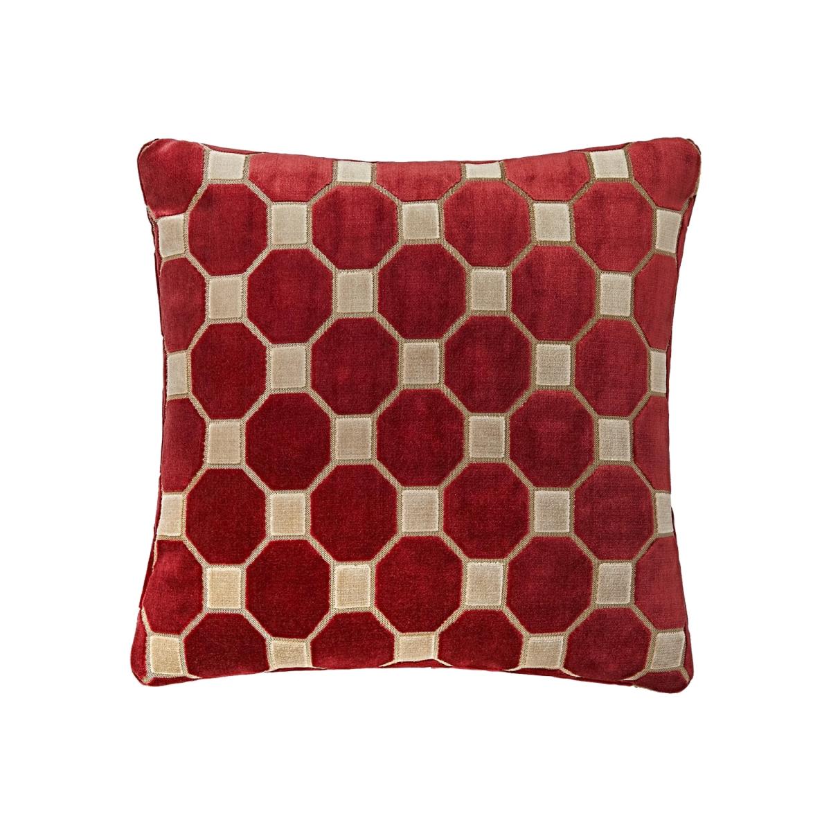 Inspired by Art Deco style, this cut velvet cushion in a geometric pattern to reveals a woven lurex background. The metallic threads and ruby-red velvet make this one of our most opulent designs, while the hexagon motif is simple and refined. Pair with our Emily plain velvet cushion for a perfectly coordinated look. This cushion is covered in the same fabric on both sides, so it’s fully reversible. Size: 40x40cm Colour: Red Material: Velvet Your shipping cost and any customs or duties charges will be added to your order at checkout. Please add your items to the basket and complete your delivery information for details of your shipping charges.