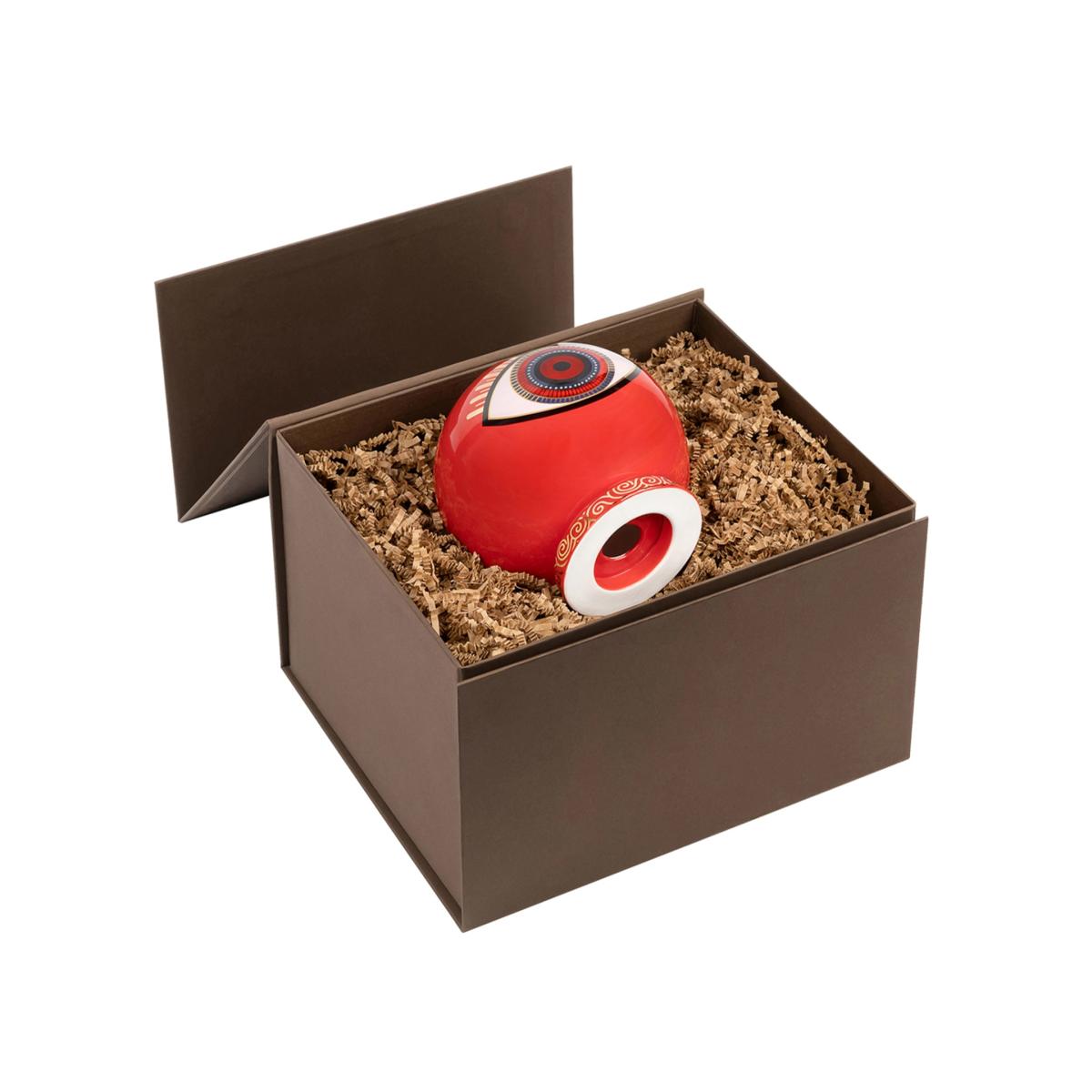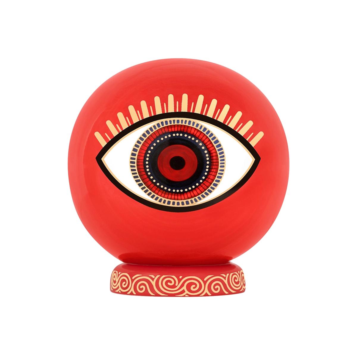 Under the watchful eye of divine forces, you are supported and protected. Thoughtfully designed by our artisans, this Ceramic Evil Eye statue is painted in red to radiate bold and fierce energy. Place this statue in the home or office, allowing the Evil Eye to keep vigilant watch upon you and your surroundings.
