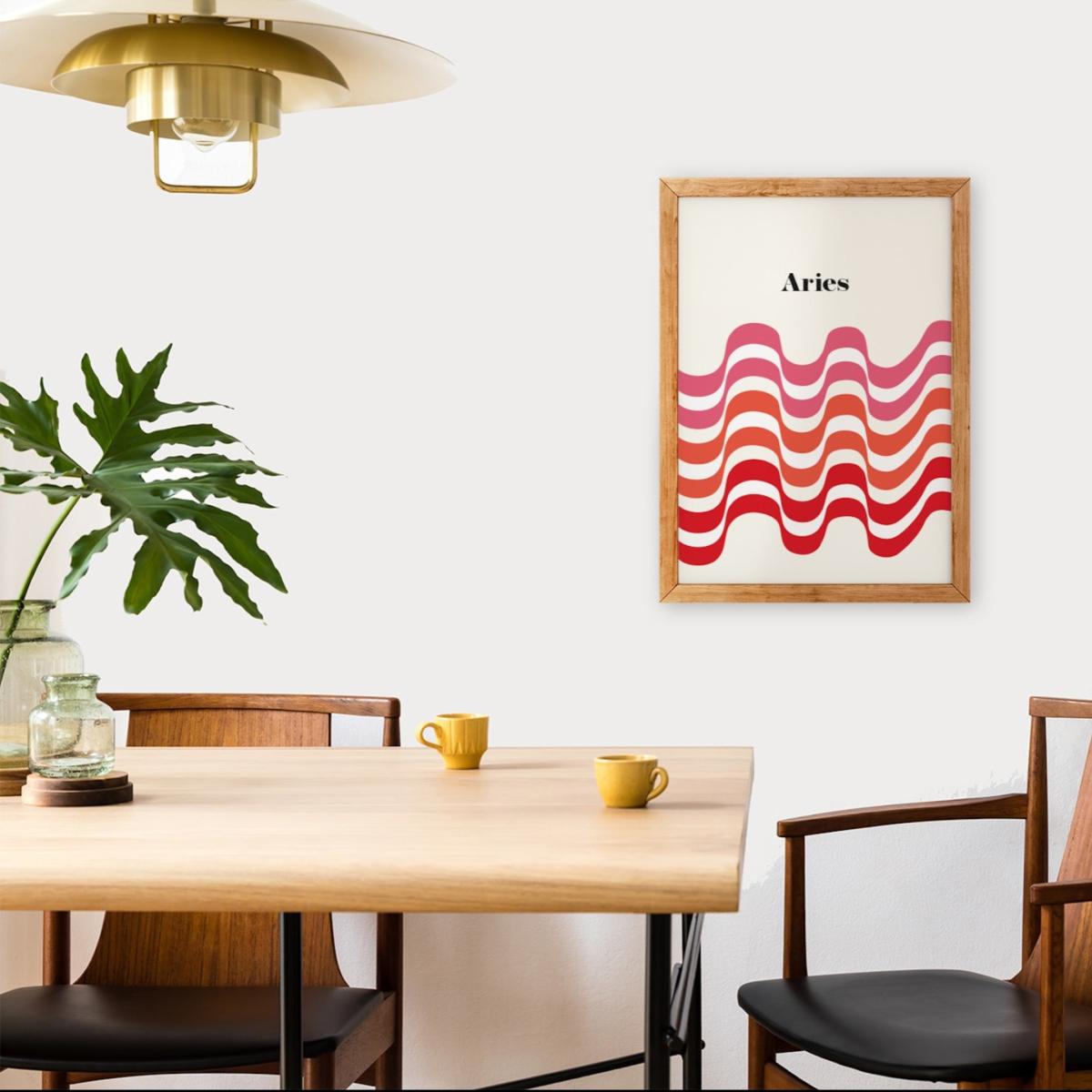 I love this zodiac print for its bold use of red, pink, and purple - it really makes a statement. It’s quite versatile and works well in modern or eclectic interiors, especially when paired with neutral walls to let the colours pop. It’s great for adding personality to a bedroom or a home office, particularly if the space has a more minimalist or contemporary aesthetic. Practical styling tips include grouping it with other celestial or geometric pieces for a curated look, or using it as the focal point on a feature wall. It’s also ideal for those who want a personalised touch that still feels fresh and modern.