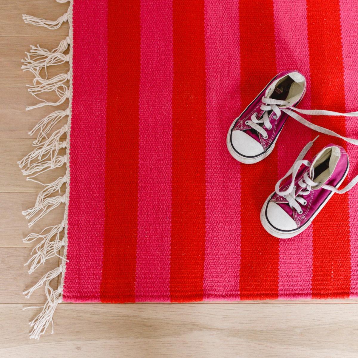 Introducing the sweetest, softest organic cotton mats! Hand-dyed and hand-woven by a small weaving studio in India, run by the family of KAD's lovely intern, Nishtha! Very soft and pliable, washable and versatile- great in the bathroom, kitchen, entryway, back door, kid's room-- really anywhere you can use a little rug!! approx 24" x 36" (2 x 3') Organic hand-dyed very soft cotton Hand woven, small batch, family studio Made with love!