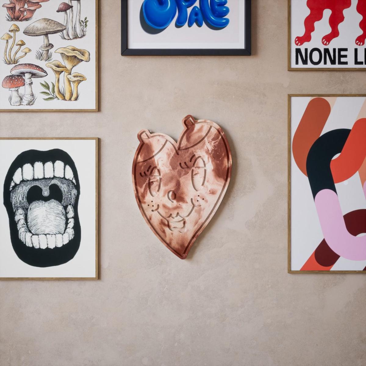 Valentines Day is about LOVE! Often it's romantic, but it can be simply appreciation, platonic love or even a bromance, just like how this partnership began. With a mutual admiration of each others work and a chance meeting they decided to share the love with this collaboration - Smith & Goat x Patrick Schmidt. Concrete Heart Wall Hanging/Tray Roses are Red, Violets are Blue, I've pierced my nipple, just for you. Wall hanging bracket included and a cheeky nipple piercing.. The wall bracket is flush to the piece, so the heart can also be used as a tray. Marbled concrete in cream, red and pink hues. Purchase includes two exclusive Collab postcards. The first drop is limited so don't break your heart by waiting around.. order now in time for Valentine's Day.
