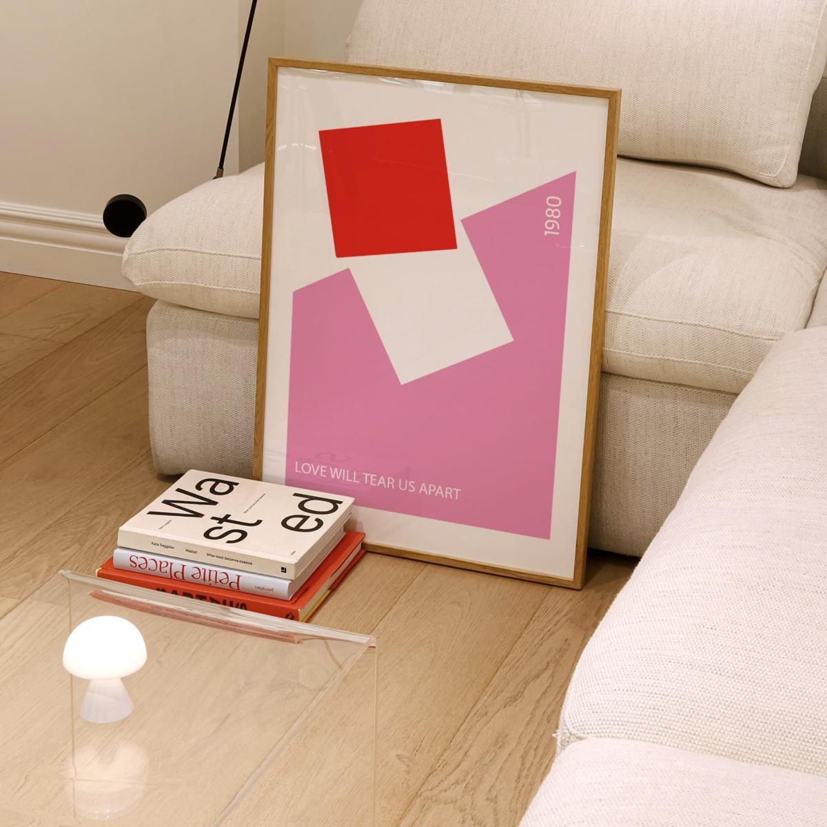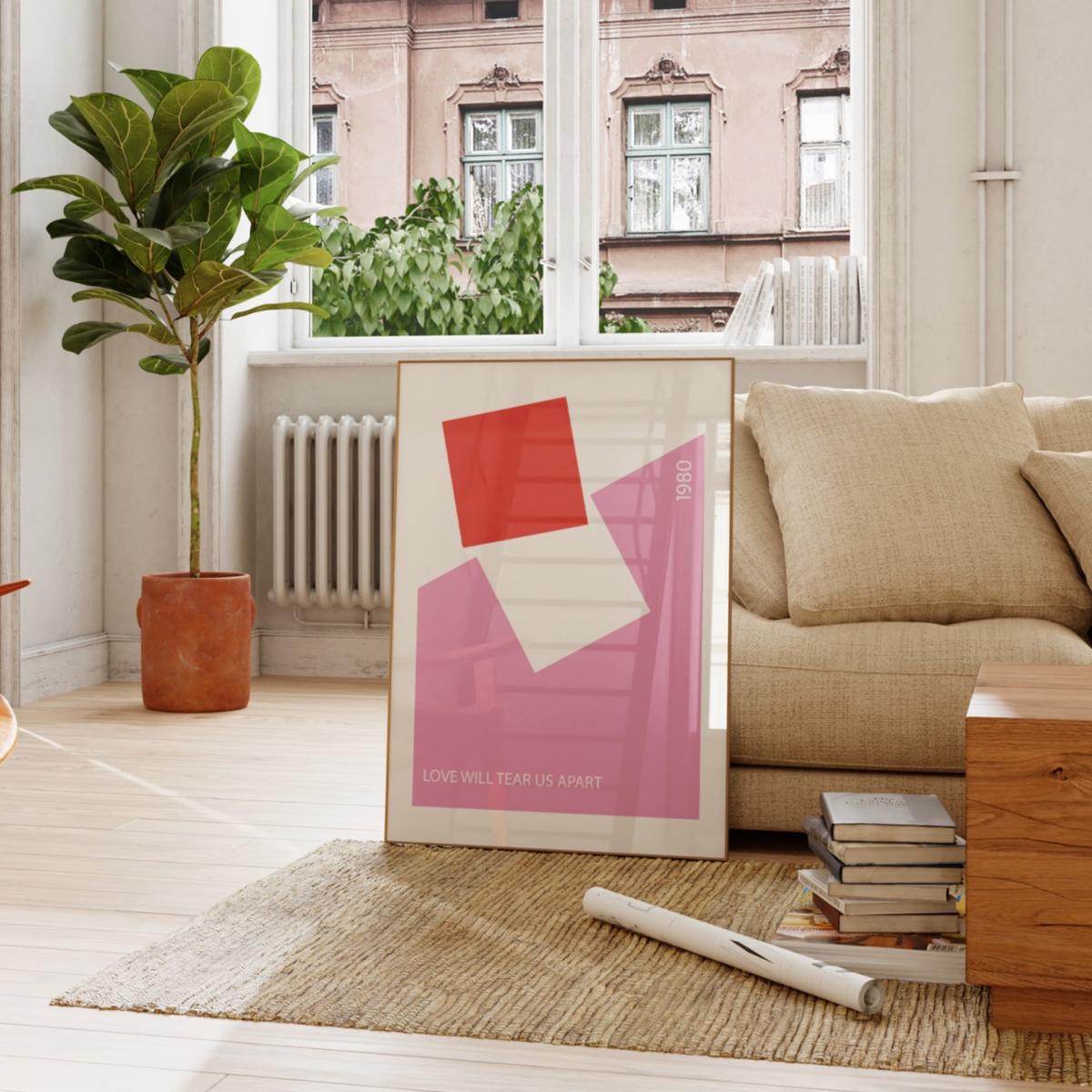 Inspired by the sounds of Joy Division in the 80s, this music print features simplistic colour block design with song lyrics from the iconic "Love Will Tear Us Apart". The perfect mid century inspired wall art, pair with plants and teak furniture. Available in two colours Sold without frame Giclée printed on Munken pure smooth cream paper which is certified by the Rainforest Alliance Program for FSC® Standards.