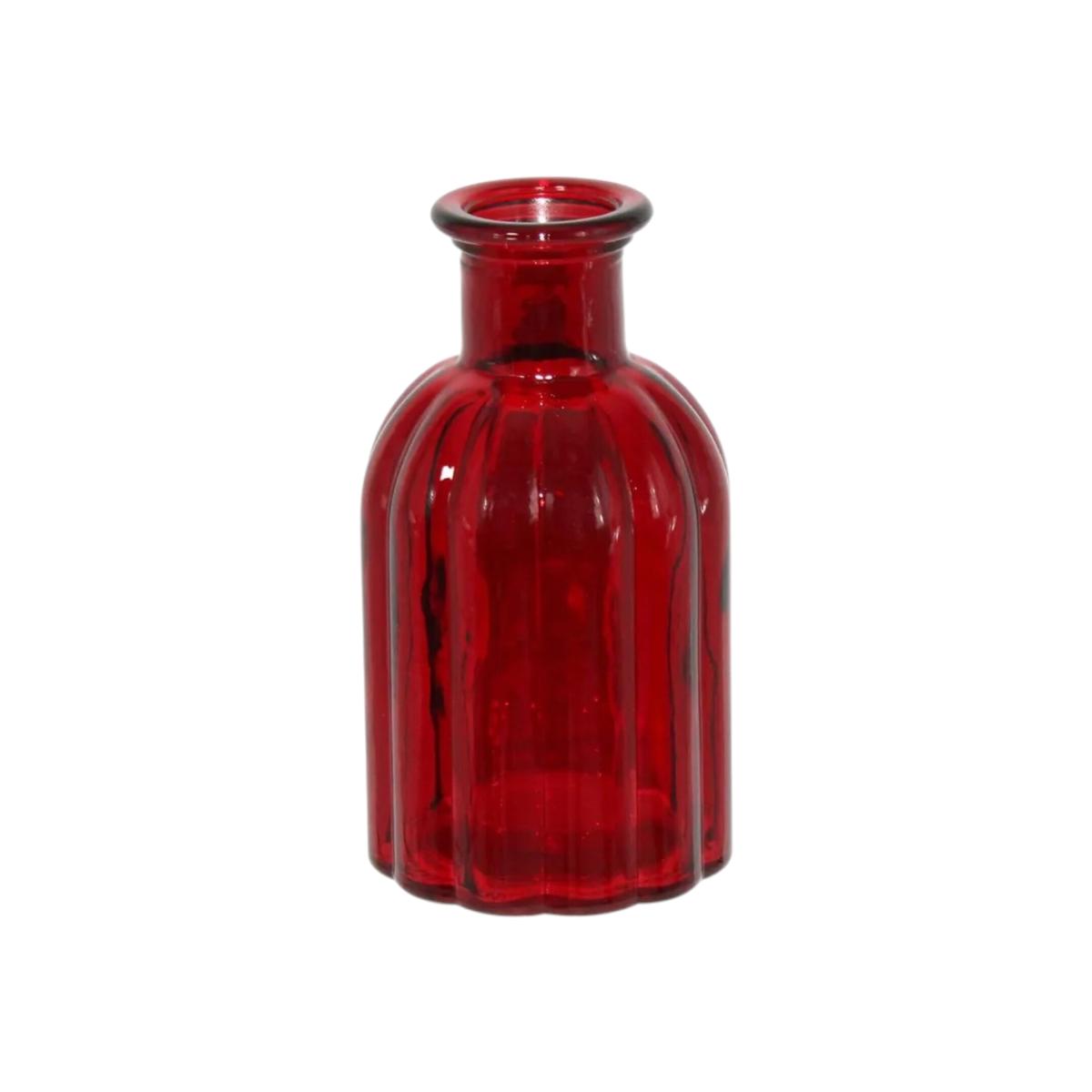 Red Ribbed Glass Bud Vase - Red / 7.5cm / 13.7cm