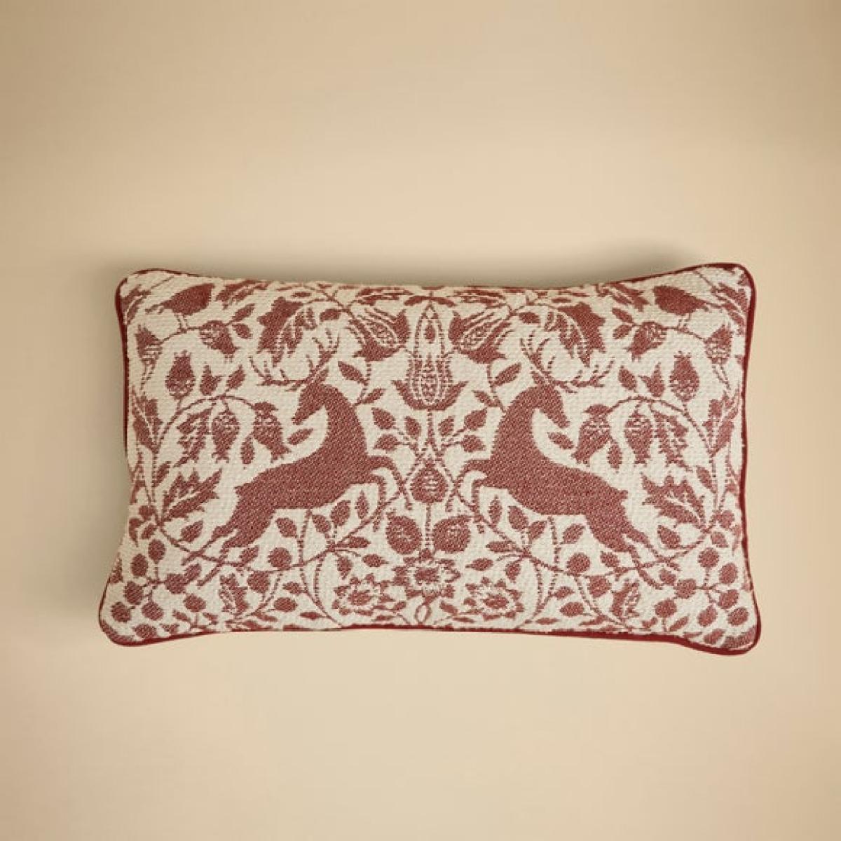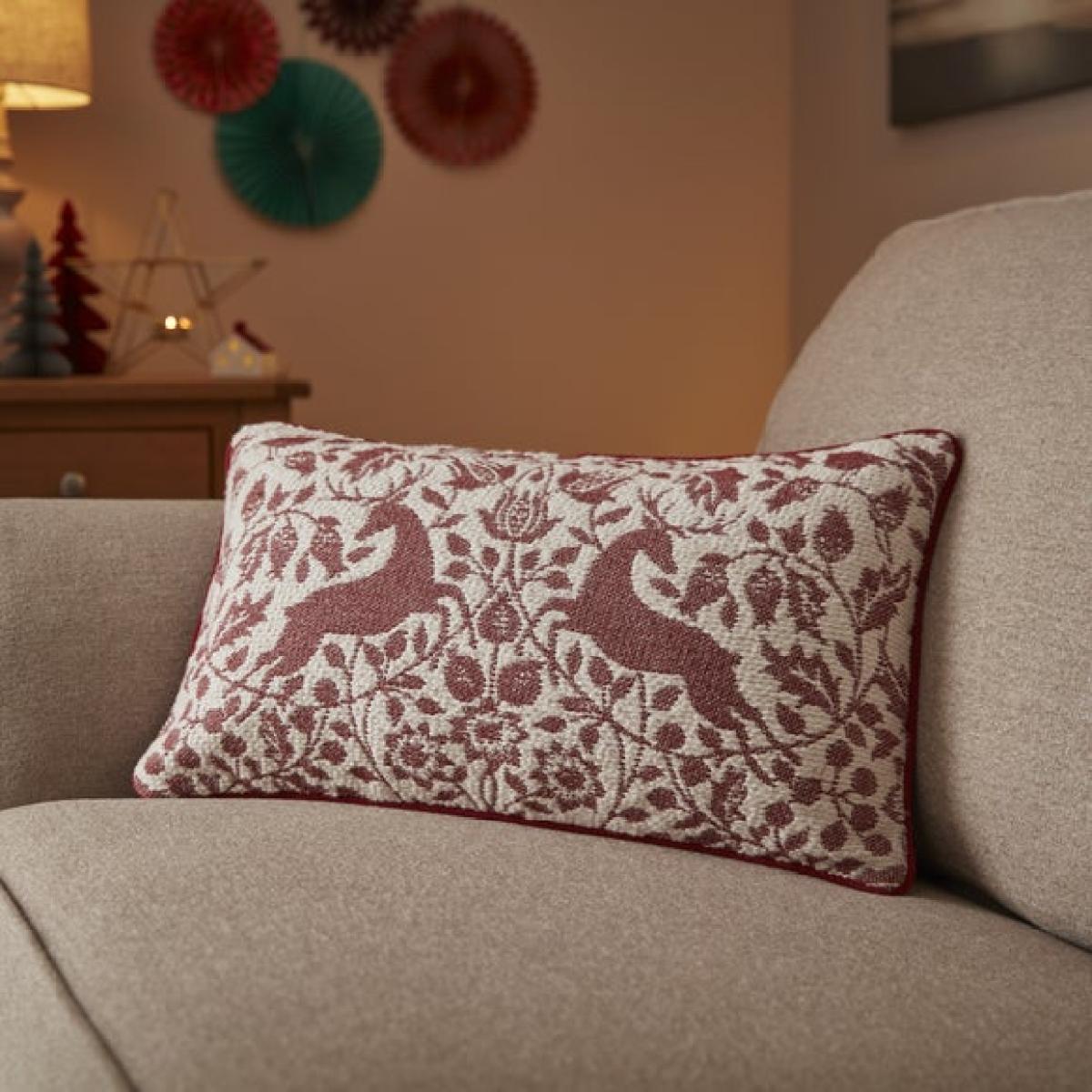 * Cotton jacquard * Stag design * Plain reverse * Piped finish Bring a festive touch to your home with the Red Stag Cotton Jacquard Rectangular Cushion. Featuring an intricately woven stag design in soft cotton jacquard, it captures the warmth and charm of the season. The bright plain reverse adds a playful pop of colour, while piped edges give a neat, tailored finish. Perfect for sofas, armchairs or beds, it’s an easy way to refresh your décor for Christmas. A lovely seasonal gift for friends, family, or yourself.
