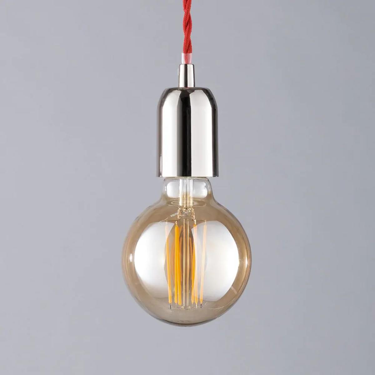 Offer a vibrant pop of colour to your lighting arrangements with this Polished Nickel Fitting with Red Twisted Cable. This height adjustable lighting accessory offers a stylish revamp to your set up and is the ideal replacement for standard white ceiling cables in your home. Partner this fitting with one of our vintage filament light bulbs (notincluded) for an industrial appearance to your home decor.