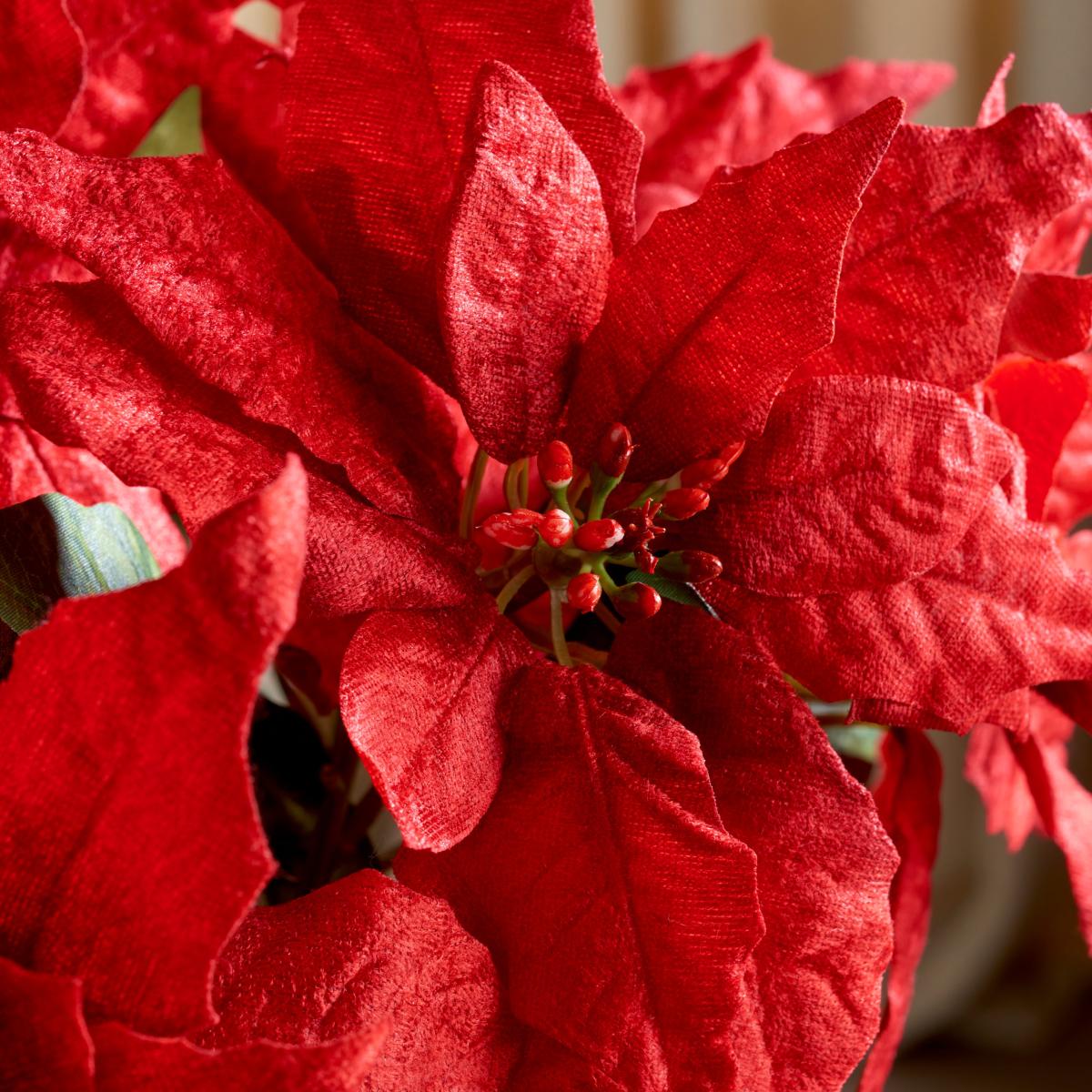 This stunning red velvet poinsettia stem is perfect to use in a festive floral arrangement this festive season.