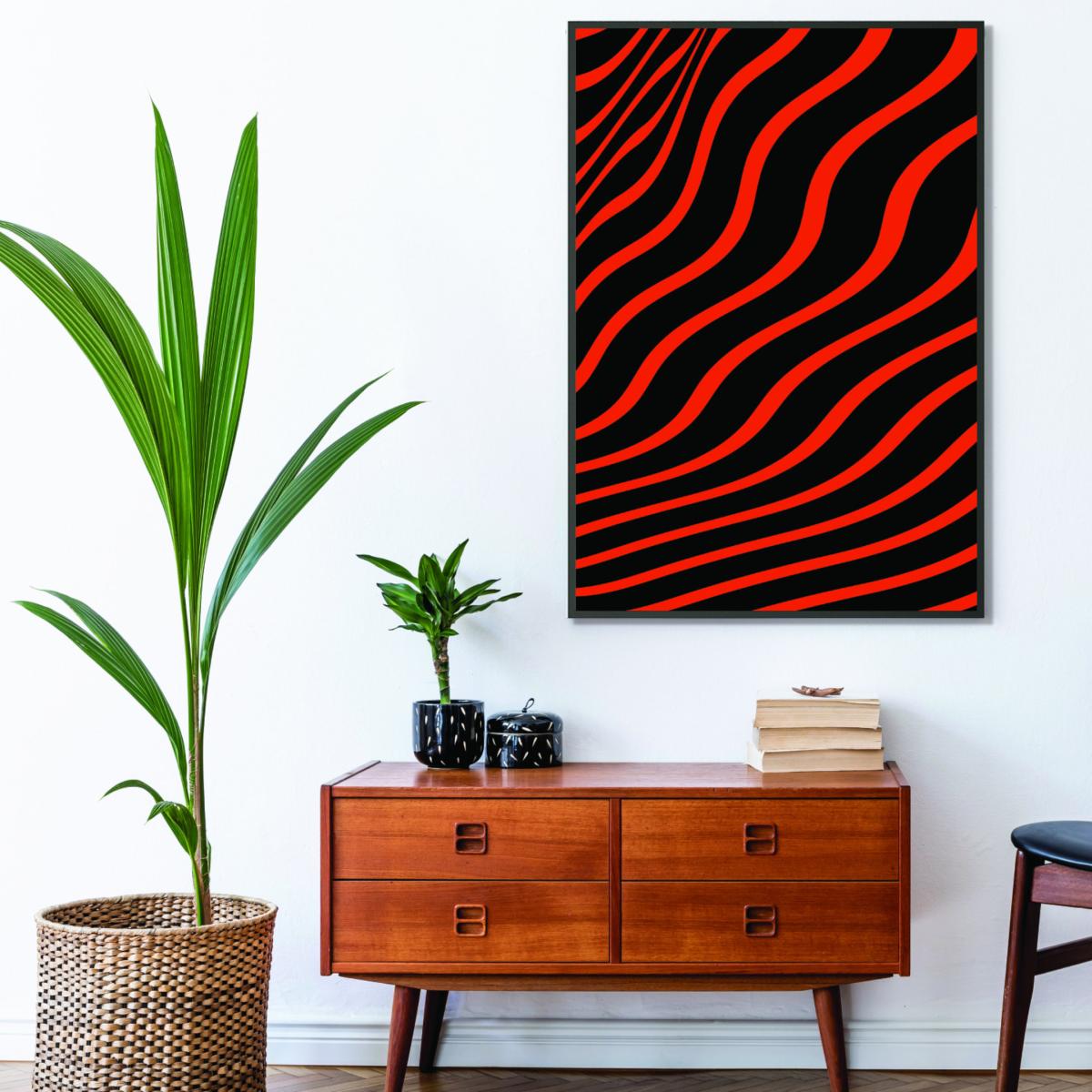 I love the bold energy of this little print - it’s perfect for adding a pop of colour and pattern to a neutral space or to complement other red accents. Its smaller size makes it versatile for positioning on a gallery wall or as a stand-alone statement piece above a sideboard or bed. It works particularly well in contemporary or eclectic interiors, where its graphic design can really shine. For practical styling, consider pairing it with simple, understated surrounds to let the artwork stand out, or balance it with other subtle red or black accessories nearby for a cohesive look. Because of its eye-catching pattern, it’s best placed where it won’t compete with other busy elements, ensuring it remains a fresh and impactful feature.