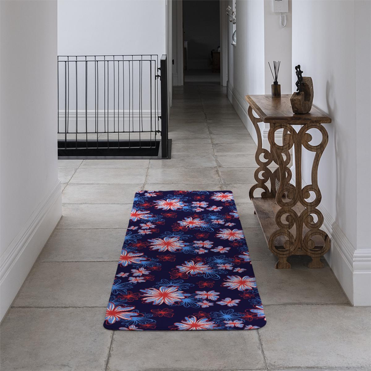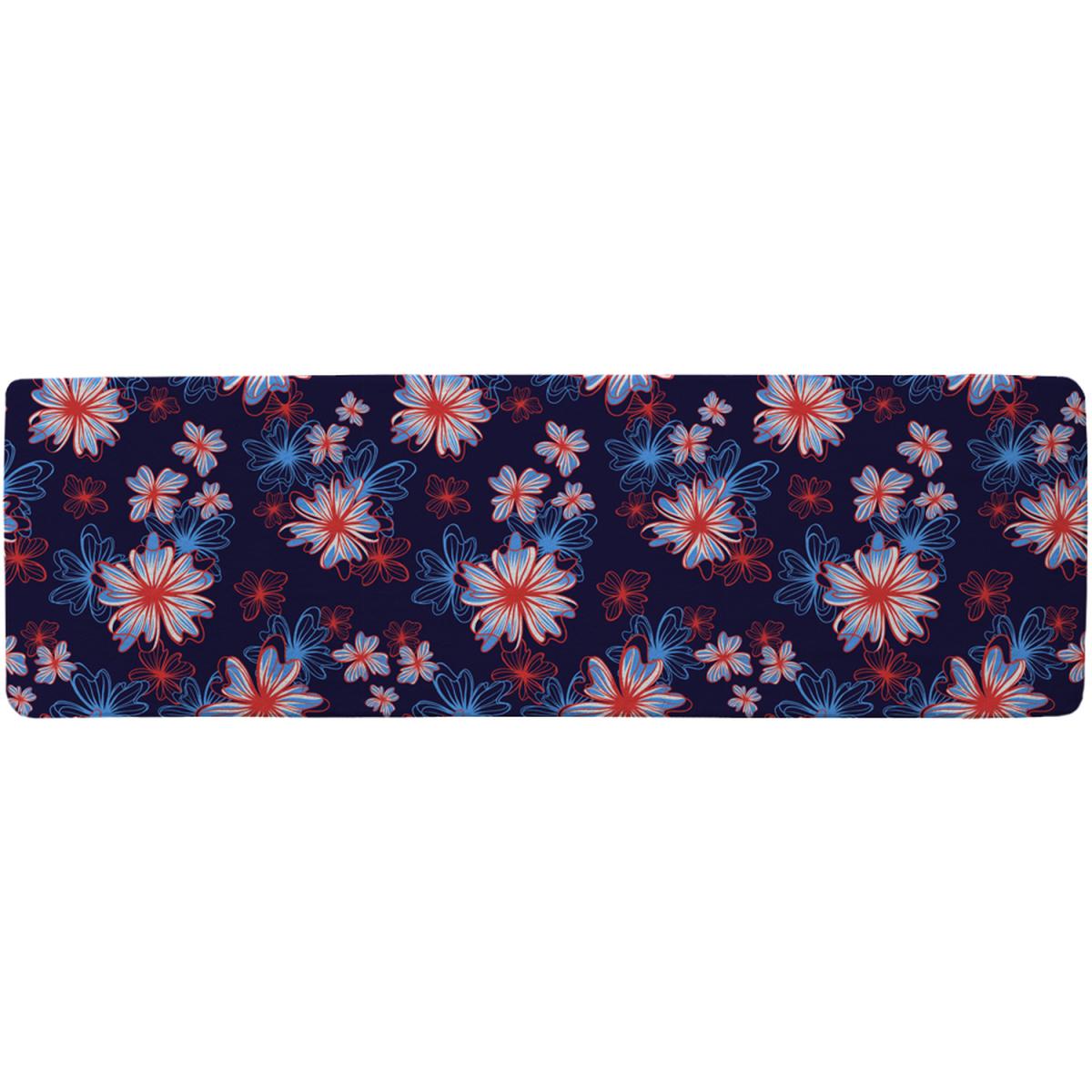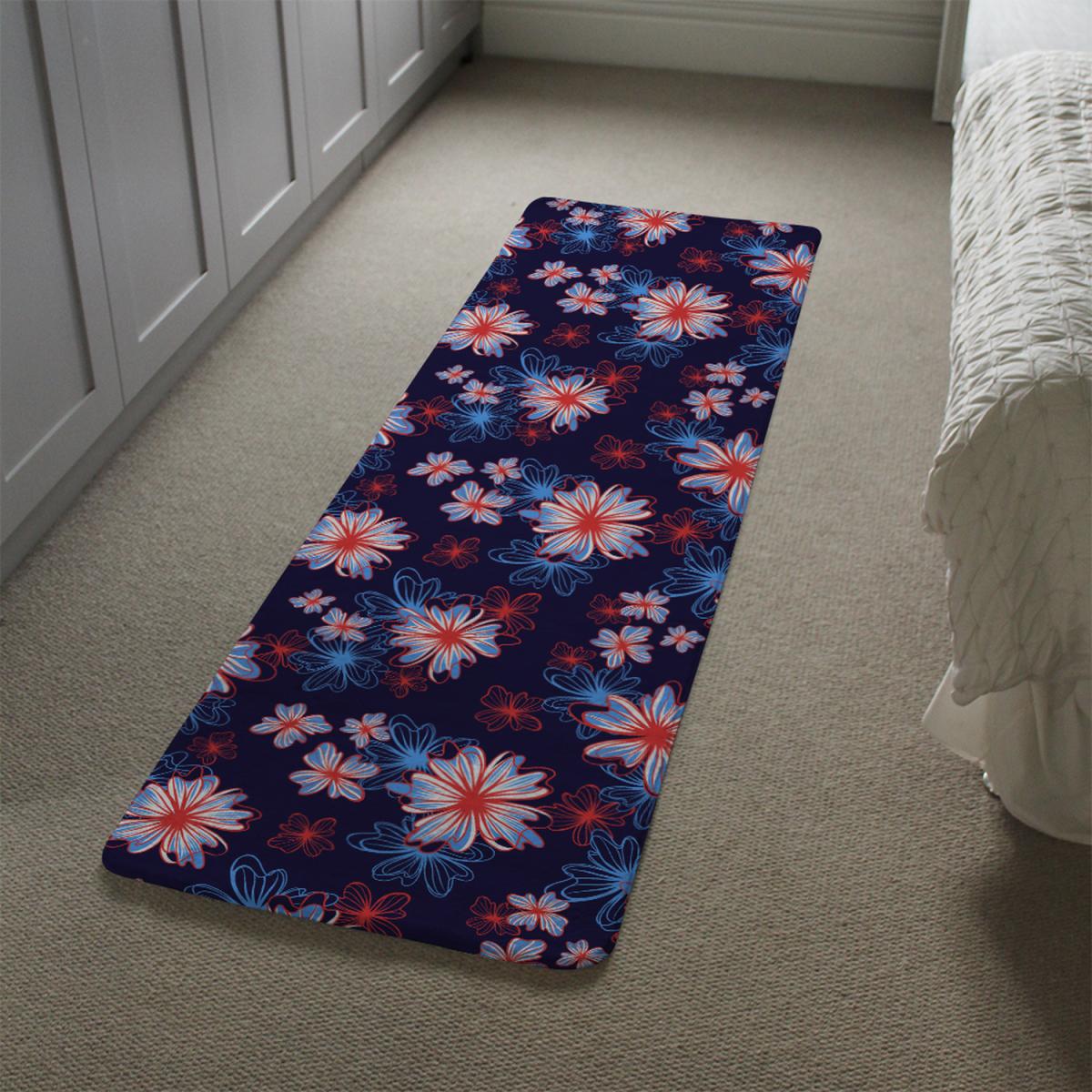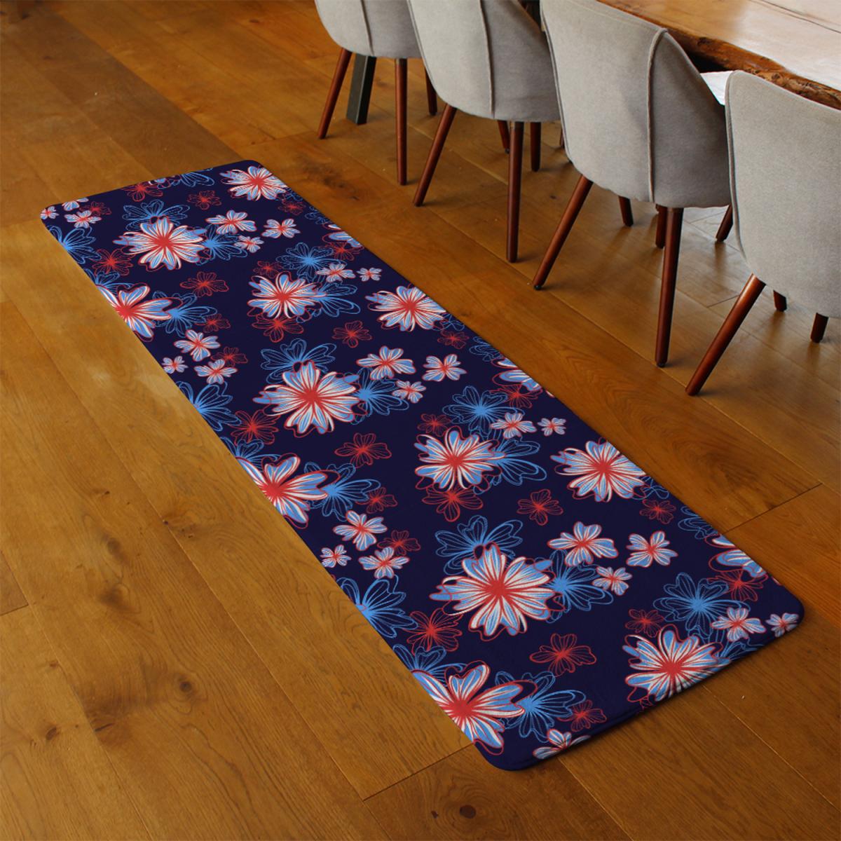 Red White Blue Flower Print Runner Rug - Pink