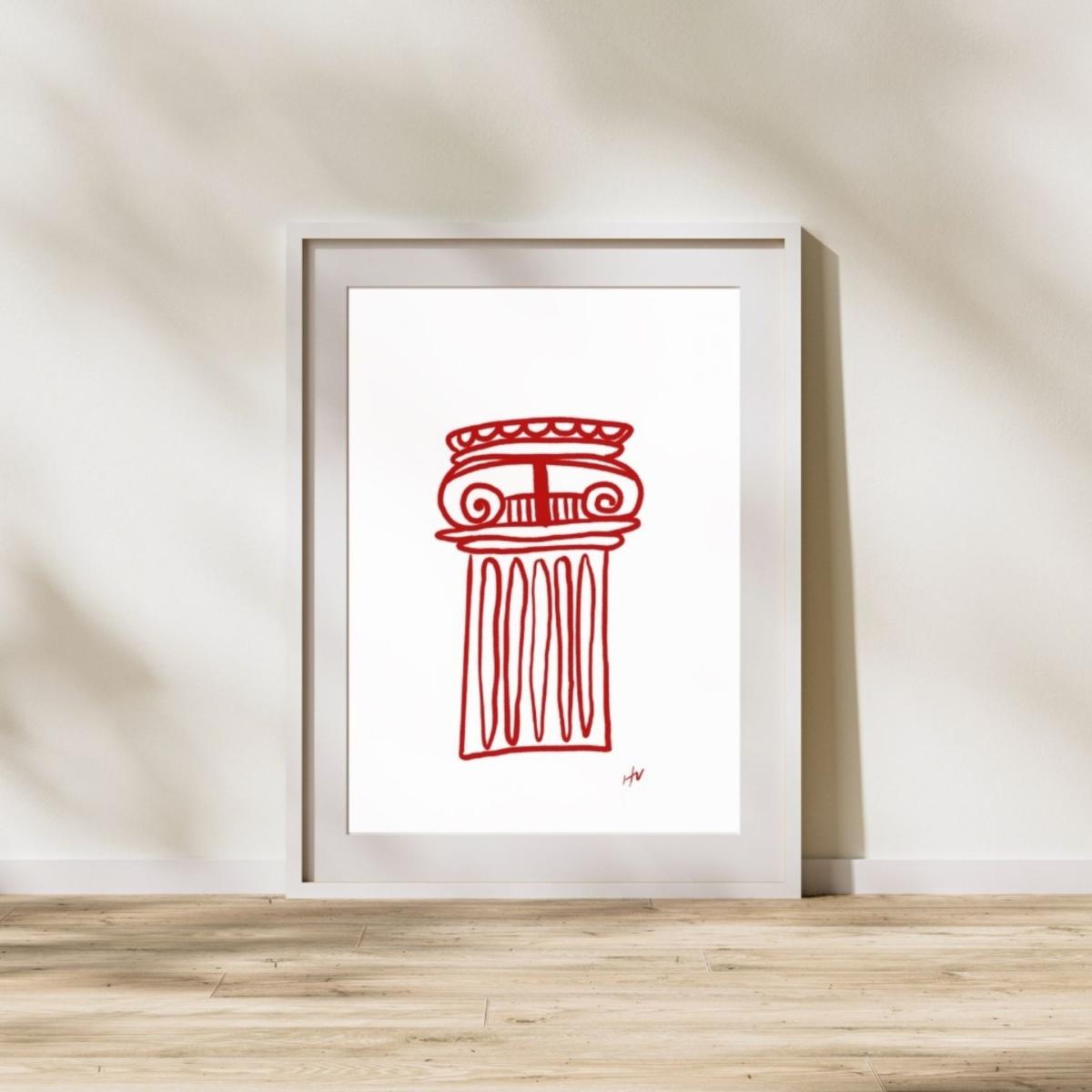 Red / White Greek Column Print 11 X 14" Hannah Via Art
