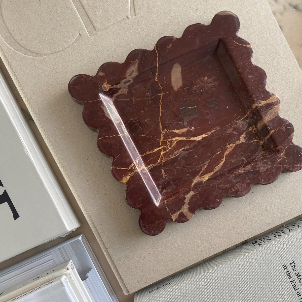 The Scallop tray crafted in Wild Cherry elevates any space with its stunning natural texture and scallop detail edge. The perfect accessory for the home. Use it as a catchall for jewellery on a nightstand, in a bathroom for cosmetics or on a coffee table or desk, the possibilities are endless. It’s bound to become a forever piece. Available in a variety of stones. Hand-sculpted by artisans, unique pattern and veining variations should be expected as this is a handmade product crafted from natural stone. Colour and sizes may vary.