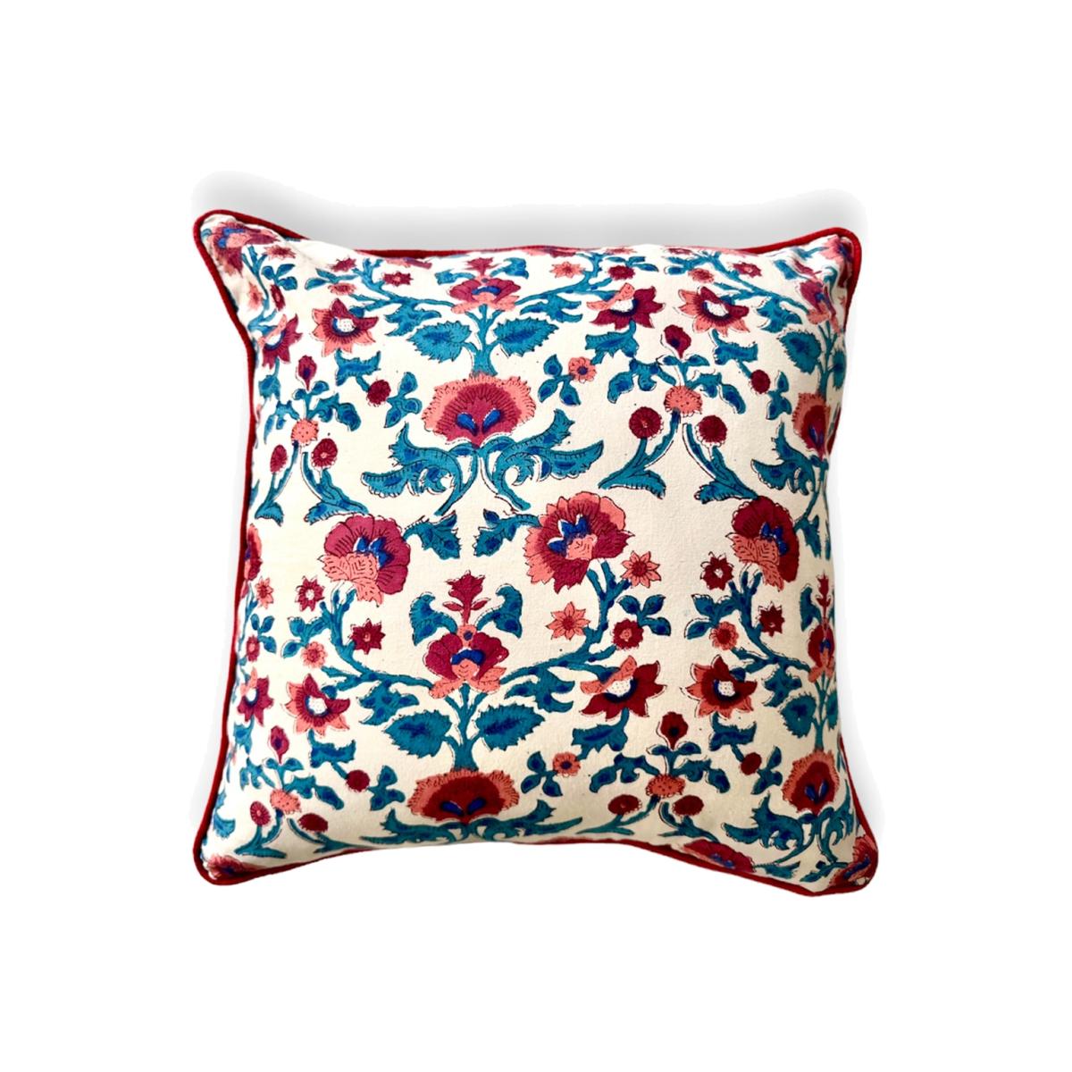 Each cushion is a canvas of pure cotton, meticulously printed by skilled artisans who have mastered this traditional technique. The Alhambra Cushion embodies a fusion of vibrant colors and intricate designs, promising not just comfort but a splash of joy and elegance to your living space. Perfect for adding a touch of artistic flair to any room, this cushion invites you to experience the beauty of handcrafted decor. 100% Cotton 20-yarn count cotton The cushion does not come with filling Our hand-block prints, made with traditional dyes, require gentle care. Wash on a delicate machine cycle at no more than 30 degrees, avoid tumble drying, and dry inside-out away from direct sunlight. Separate washing is recommended to maintain the vibrant colors.
