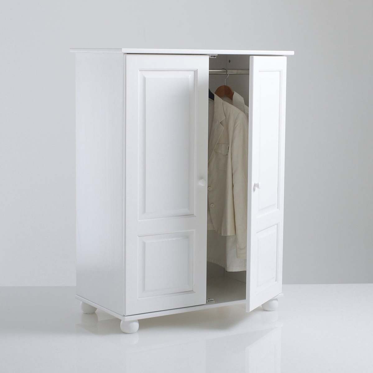 This space-saving 2-door wardrobe is very practical, offering plenty of storage. Standing at a height of 120cm, this is the perfect size for rooms with sloping ceilings!Compact, yet roomy – the Redmond wardrobe is the perfect height for spaces with sloping ceilings – and the perfect style to add even more charm to a romantic attic bedroom. Product details: • 2 doors • Full wardrobe space • Ball feet on front • Solid pine frame and front • Fibreboard back with decorative pine effect. See the full Redmond collection online. Dimensions: • Width: 88cm • Height: 120cm • Depth: 49cm. Home delivery:Your Redmond 2-door wardrobe is self-assembly. It will be delivered to your door!Note! Please check that all access points are large enough to accommodate your delivery (doors, stairs, lifts).Dimensions and weight of parcel:1 box • L121.4 x H16.1 x D53.8cm • 28kg