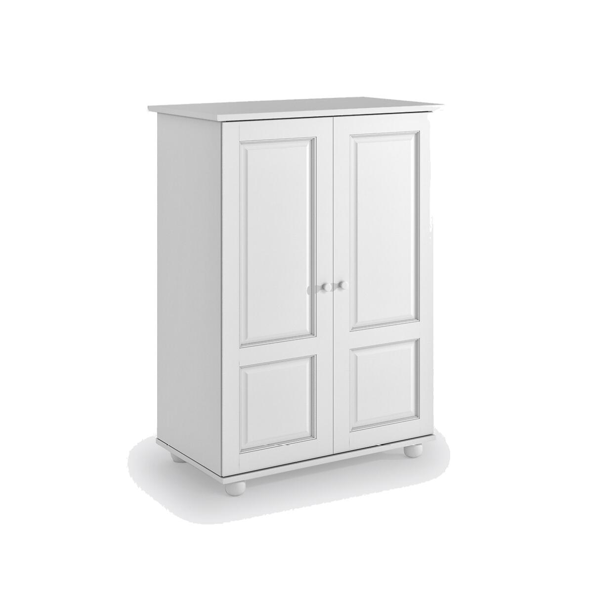 Redmond solid pine wardrobe. This space-saving 2-door wardrobe is very practical, offering plenty of storage. Standing at a height of 120cm, this is the perfect size for rooms with sloping ceilings ! Product Details • Solid pine frame and front • Fibreboard back with decorative pine effect • 2 doors • Full wardrobe space • Ball feet on front. Dimensions • Width: 88cm • Height: 120cm • Depth: 49cm. Home delivery:Your Redmond 2-door wardrobe is self-assembly. It will be delivered to your home!Note! Please check that all access points are large enough to accommodate your delivery (doors, stairs, lifts). Parcel Dimensions1 parcel • L121.4 x H16.1 x D53.8cm • 28kg
