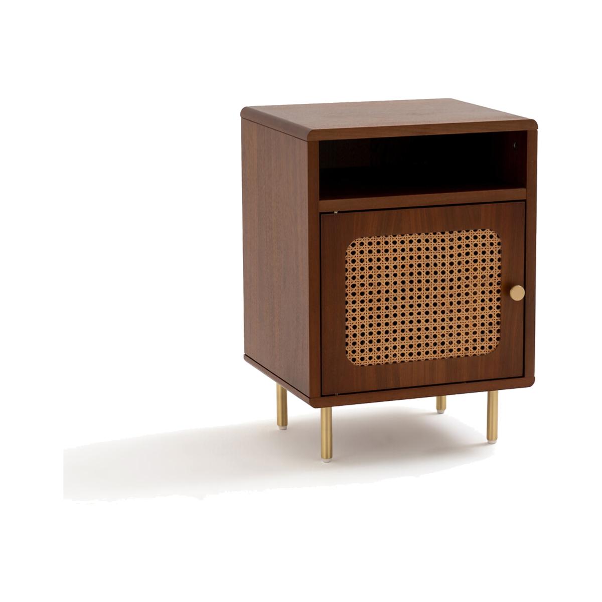 Redpop Cane & Walnut Bedside Table with Cupboard