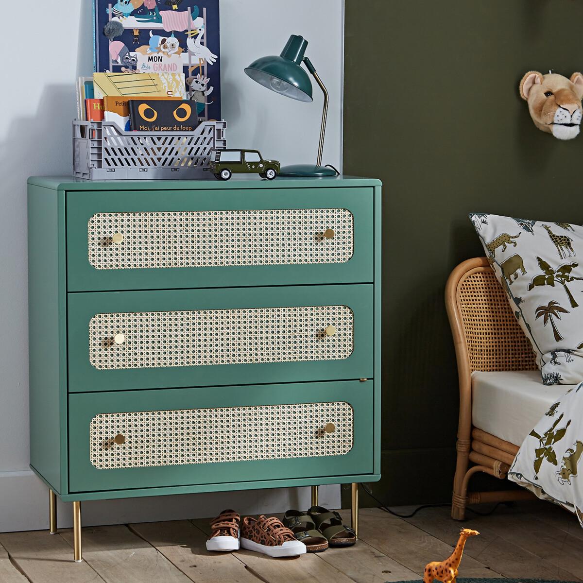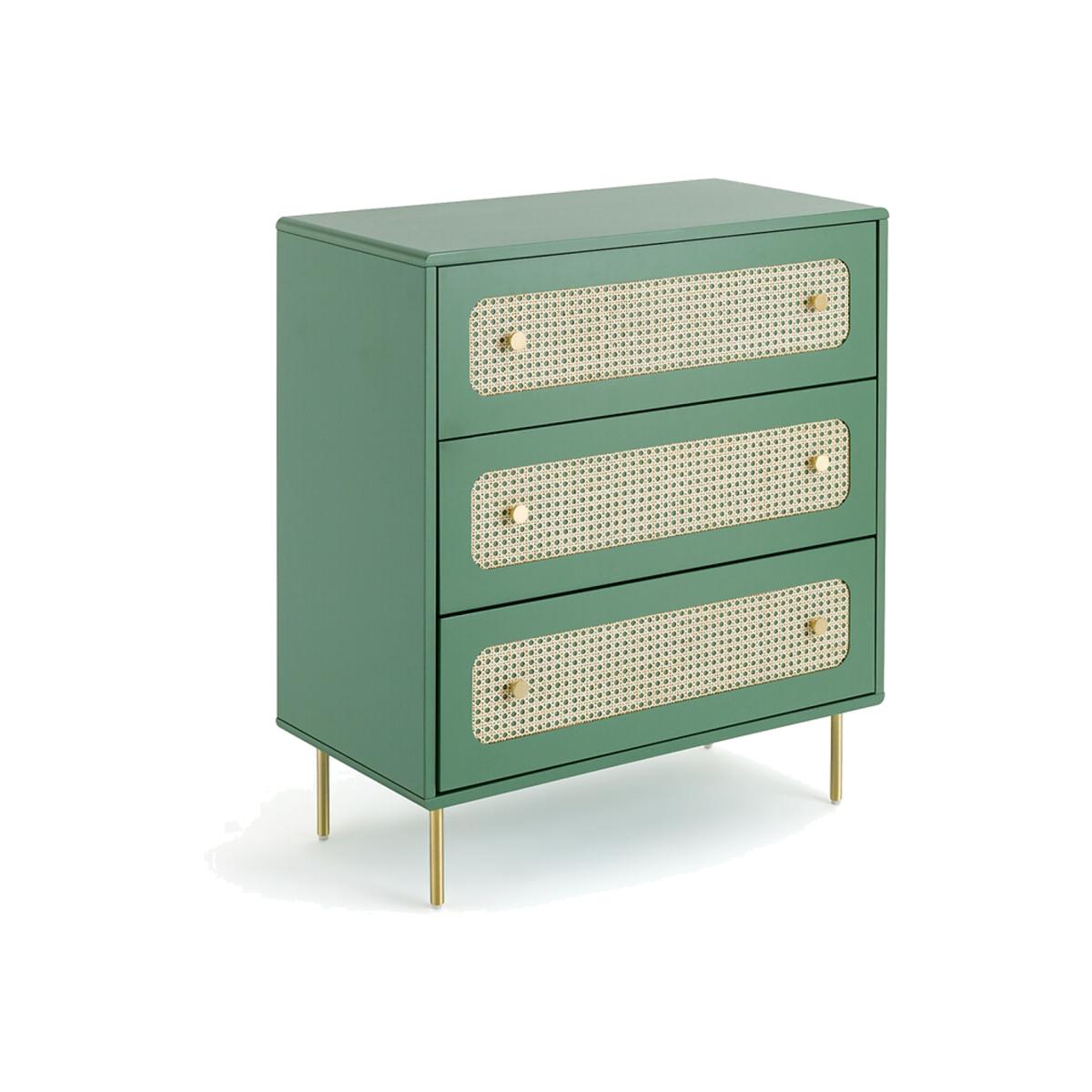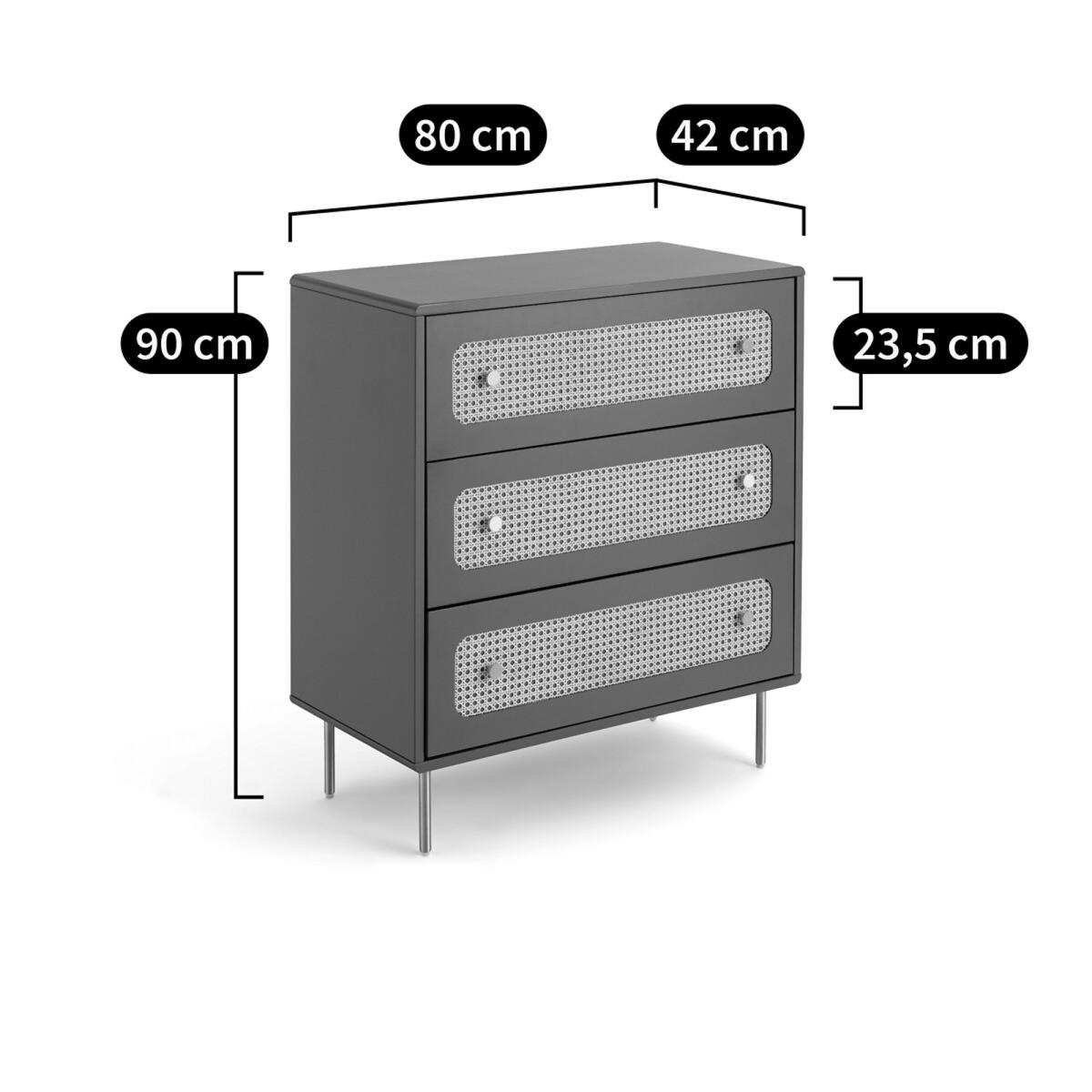 For a retro look that's just right, this charming chest of drawers is perfect for the bedroom. Decorative and functional, this chest of drawers has 3 attractive drawers covered in natural cane.