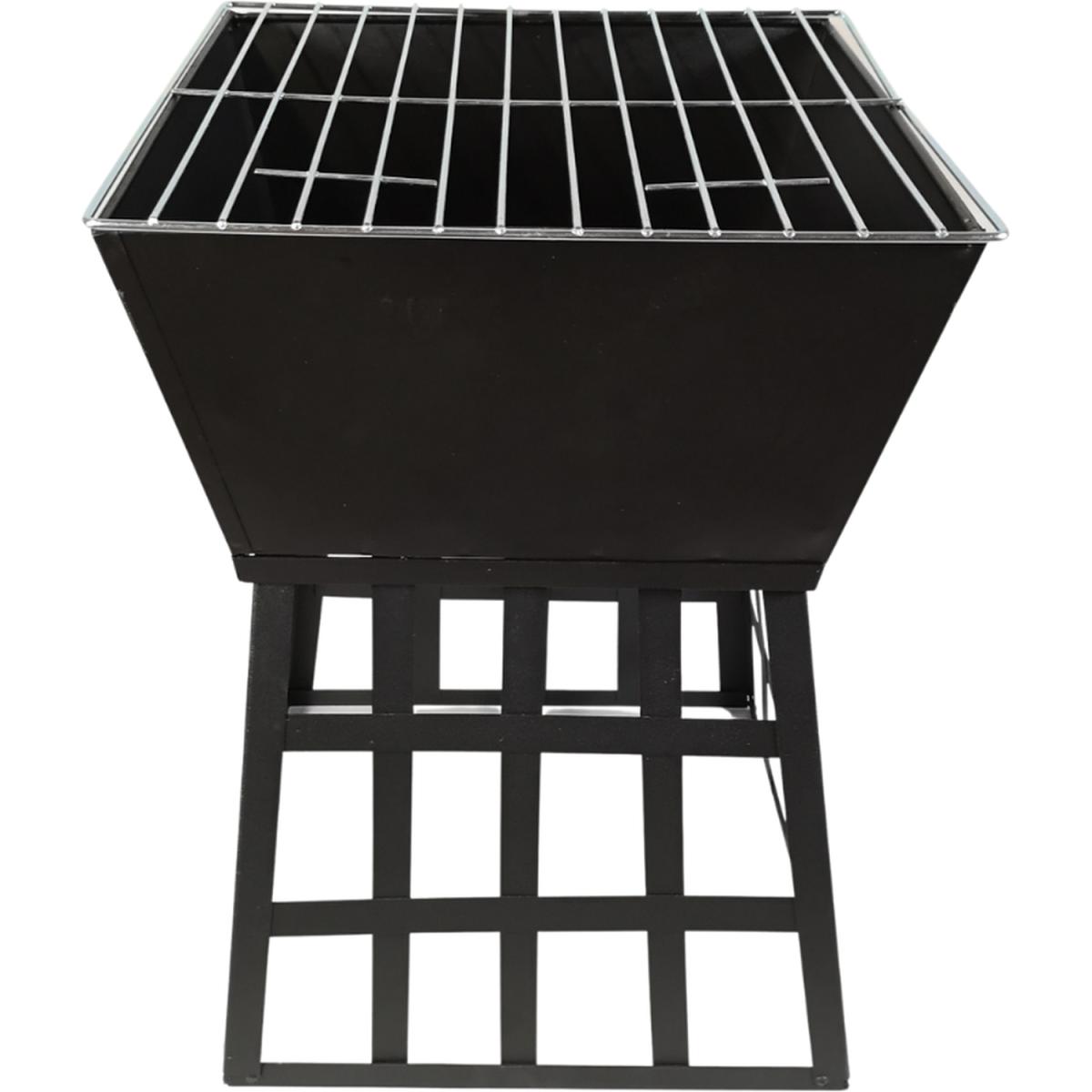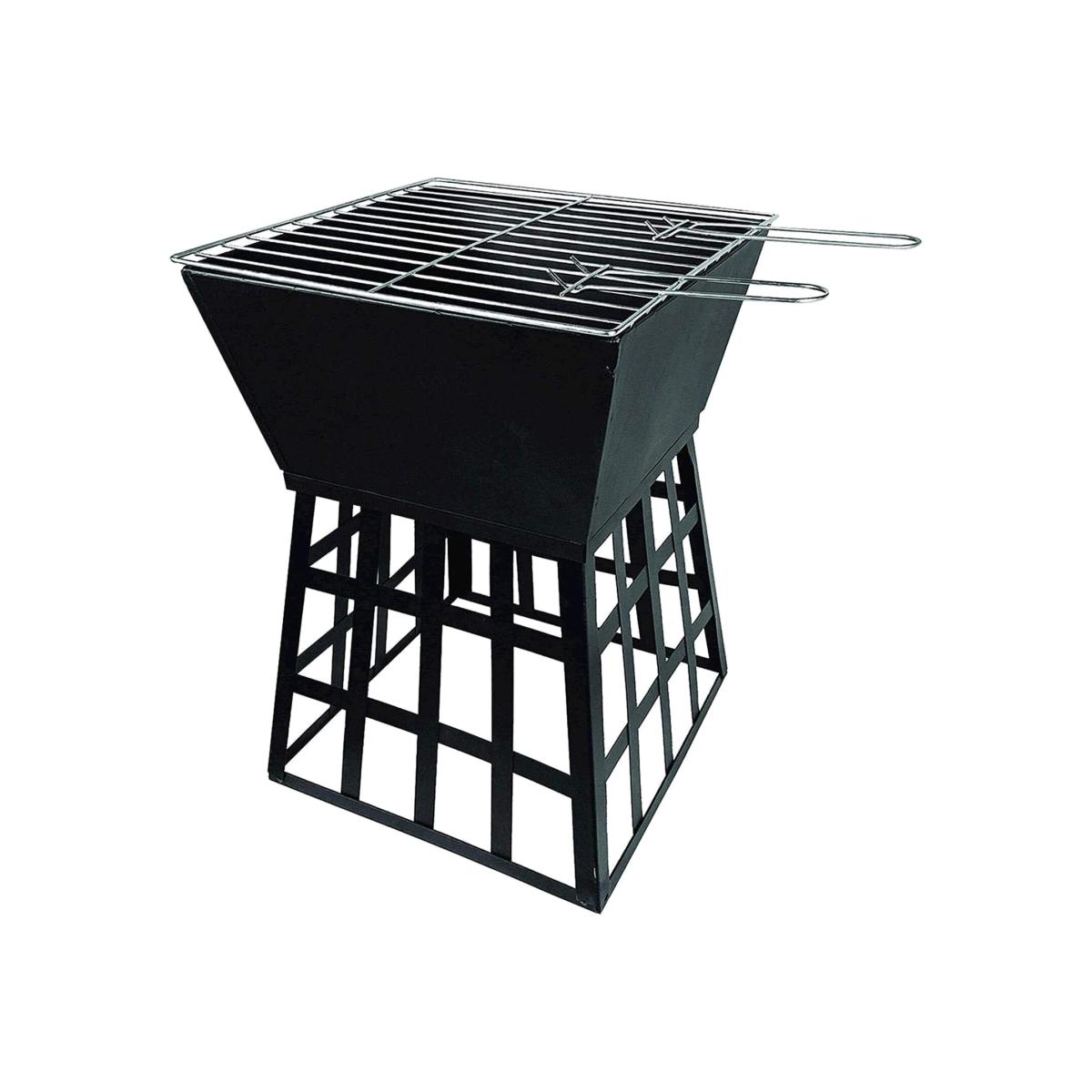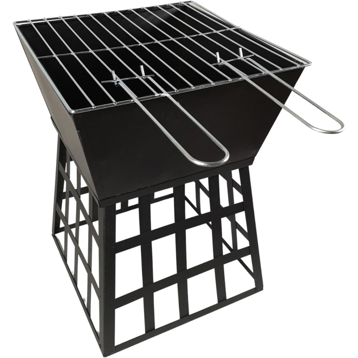 Garden Black Fire Pit BBQ. Includes a metal grill so it can be used as a BBQ. Heat resistant black powder-coated cold-rolled iron plate Body. Includes grill handles. This multi-purpose fire pit is ideal for keeping you warm in the cool evenings, should you wish for a fire or a bbq.