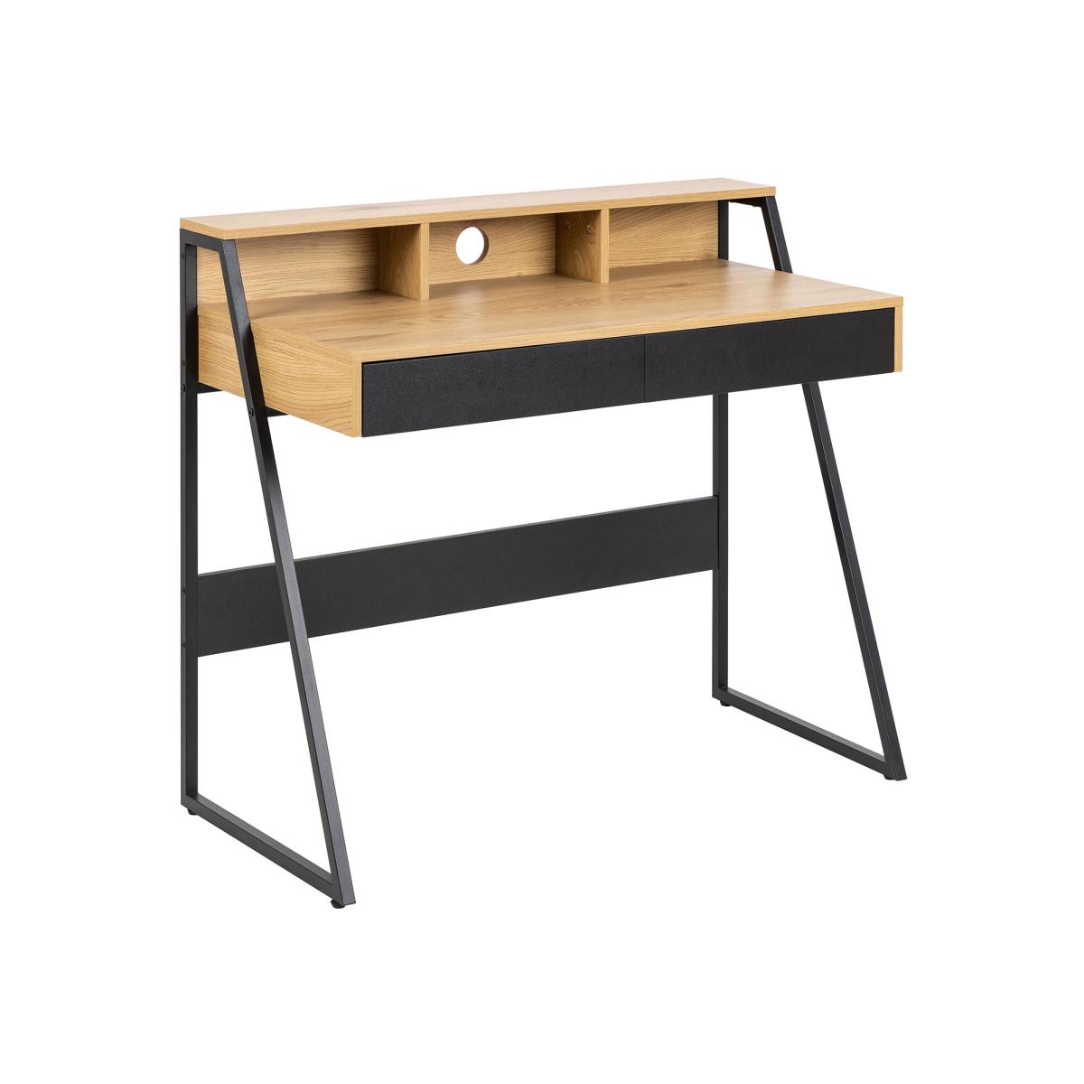 Upgrade your workspace with this Reece Office Desk. Finished with a base of matt black rough powder-coated steel, the desk features metal runners, an open compartment, and a wire hole for added functionality. It includes convenient storage solutions like a drawer and compartments to keep your worktop clutter-free. Ideal for working, studying or organising, this desk is a must-have for study rooms and home offices.