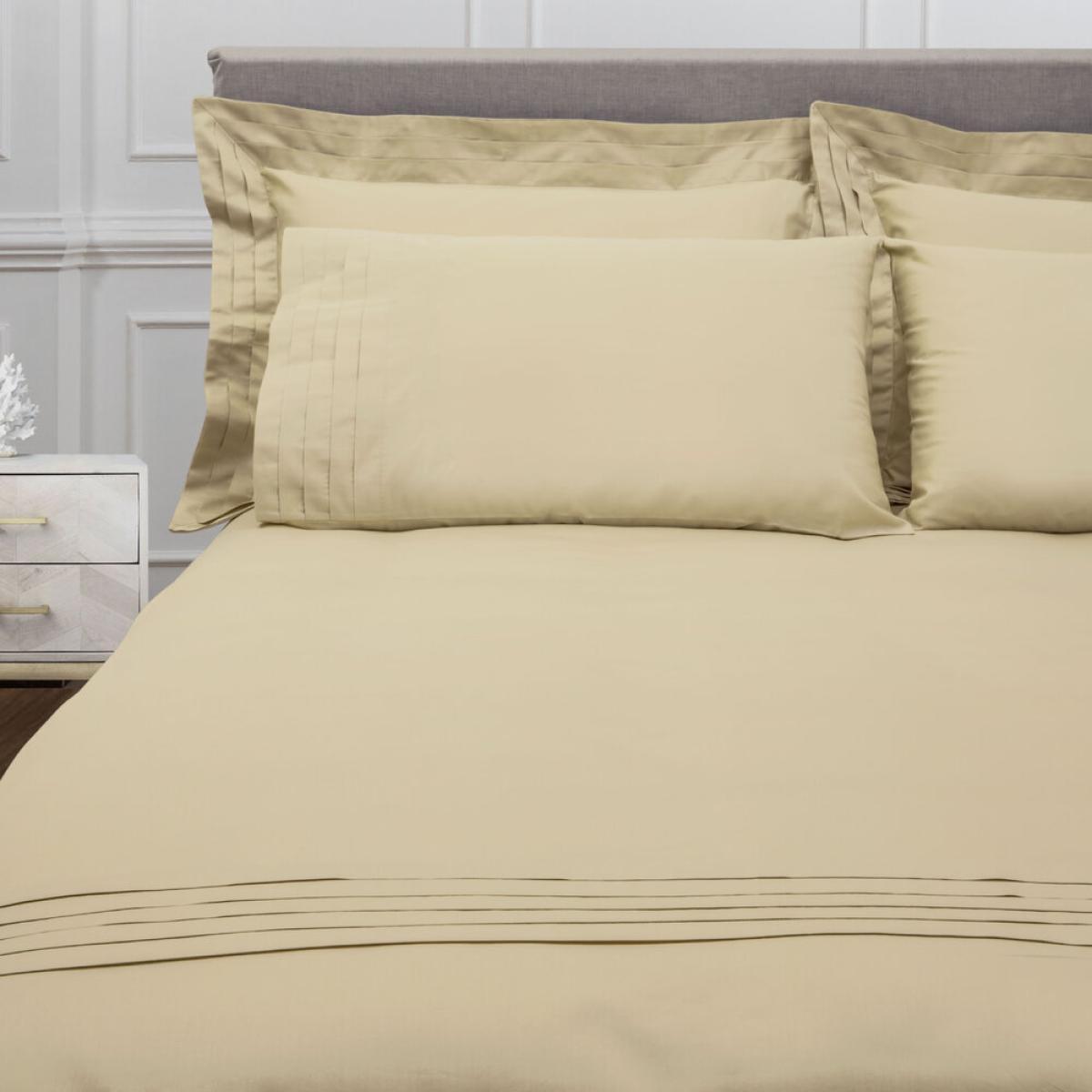 This Furness bed set from Reed Family Linen will have you snoozing the alarm. Crafted from long-staple cotton sateen with an enviable 400 thread count, this neutral coloured set includes a duvet cover, fitted sheet and two pillowcases. Inspired by the wit, charisma and fashion of Catherine, Duchess of Cambridge, it features a hand-pleated cuff detailing. Wrapped in tissue paper, this set includes everything you need to know about laundry care, brand history, and design details alongside extra buttons and a lovely thank you card.