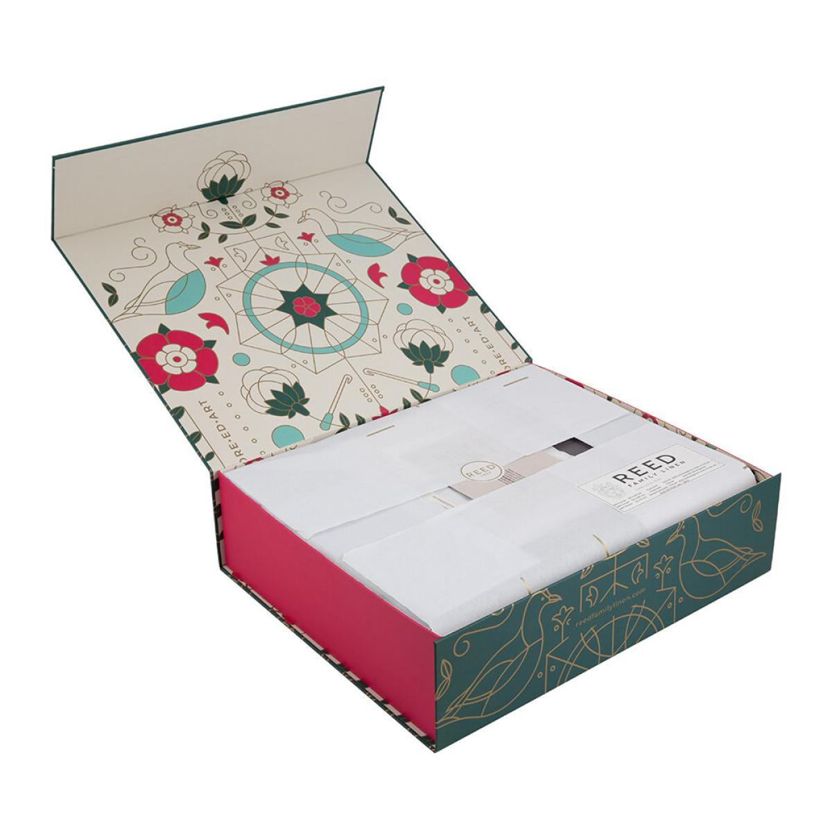 This Grafton bed set from Reed Family Linen will make it impossible to get out of bed. Made from long-staple cotton sateen with an enviable 400 thread count, this set includes a duvet cover, fitted sheet and two pillowcases. Inspired by the wit, charisma and fashion of Catherine, Duchess of Cambridge, the Grafton collection has become one of Reed Family Linen’s most coveted collections. Wrapped in tissue paper, this set includes everything you need to know about laundry care, brand history, and design details alongside extra buttons and a lovely thank you card.
