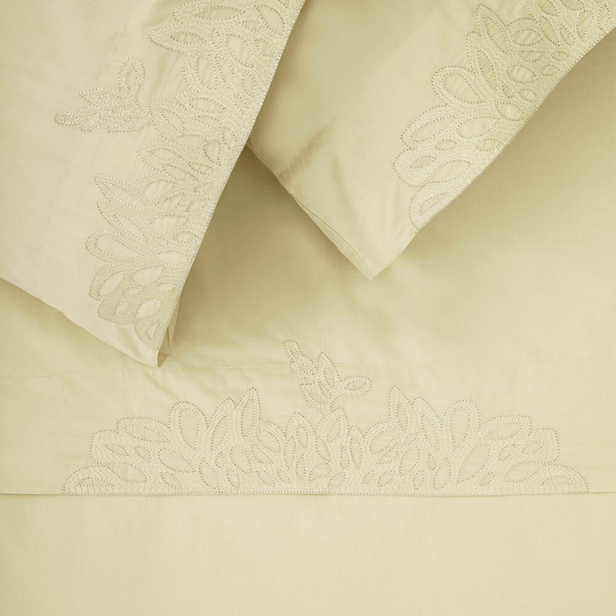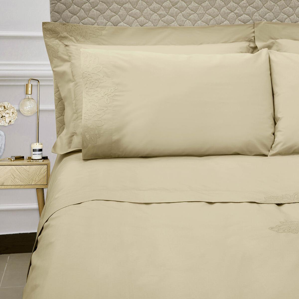 Bring some royal style to your bedroom with this Wallis bed set from Reed Family Linen. Crafted from long-staple cotton sateen with an enviable 400 thread count, this set includes a duvet cover, fitted sheet and two pillowcases. Inspired by the wit, charisma and fashion of Catherine, Duchess of Cambridge and feature a metallic embroidered design. Wrapped in tissue paper, this set includes everything you need to know about laundry care, brand history, and design details alongside extra buttons and a lovely thank you card.