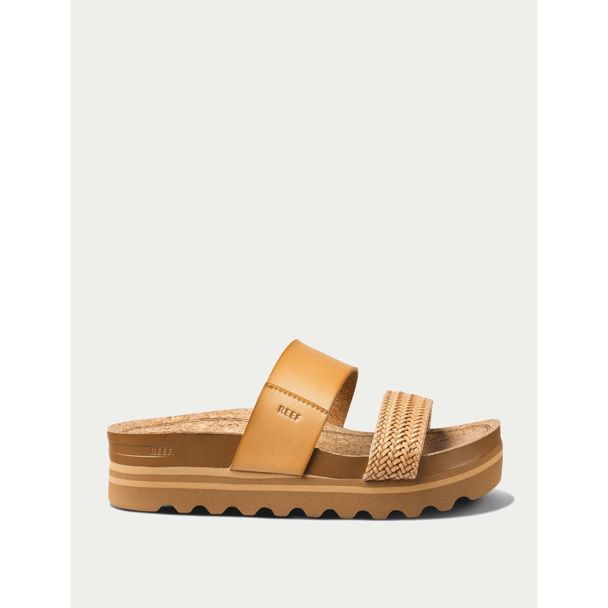 These Cushion Vista Hi sliders from Reef combine style and comfort for effortless summer wear. They're made with a chunky lug sole that adds a trendy flatform element, while the lightweight EVA build ensures they won't weigh you down. The soft, supportive footbed features generous arch support and heel cupping to cradle your feet all day long. These sandals are finished with a distinctive plaited strap and natural cork footbed for a touch of texture and visual interest.