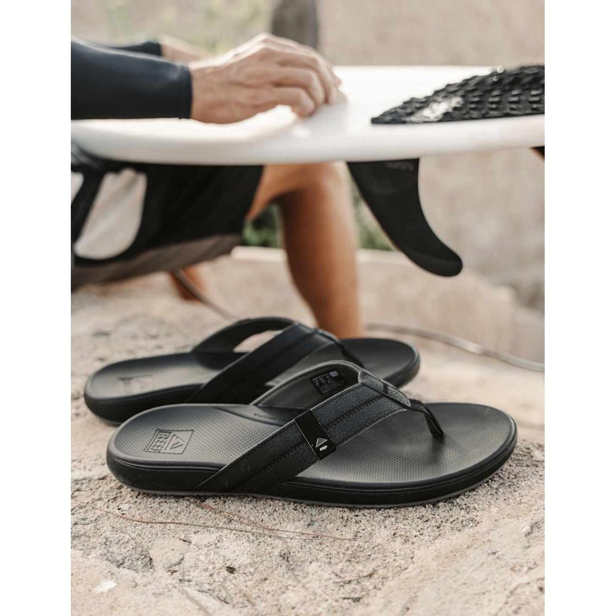 Slip on these Reef flip flops for an effortlessly casual look. They're made with a timeless toe post foot strap, making them easy to put on at the beach or around the pool. The supportive footbed moulds like memory foam for a cushioned feel, rebounding as you move for that extra bit of comfort.