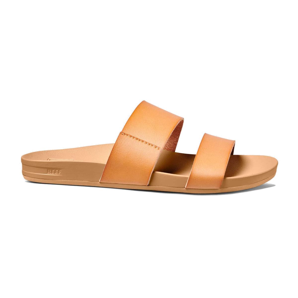 Reef Women's Cushion Vista Metallic Flat Sliders - 6 - Tan, Tan,Gold,Dark Tan