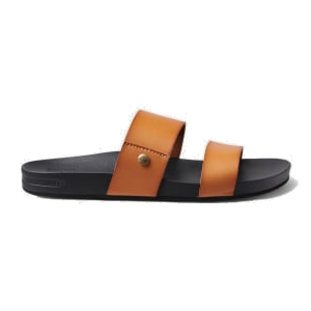 Reef Women's Cushion Vista Metallic Flat Sliders - 7 - Dark Tan, Dark Tan,Tan,Gold