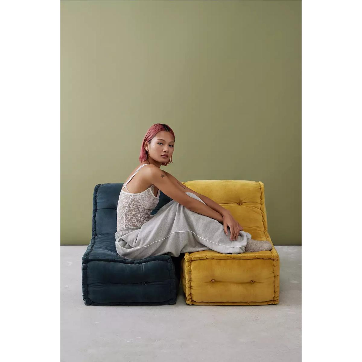 Create a one-of-a-kind lounge space with the Reema floor cushion, a chilled-out seating solution in an armchair style. Features a raised back and a solid rectangular base, finished with a pintucked velvet shell and soft polyester fill. Exclusive to UO. *Online return only. This item cannot be returned instore. Please note furniture items currently cannot be shipped to Northern Ireland or The Republic of Ireland. Delivery of large furniture items may take 1-2 weeks and are therefore not eligible for Next Day Delivery.* **Content + Care** \- Cotton, Polyester fill \- Spot clean **Size** \- Shipping container: 40cm x 100cm x 100cm