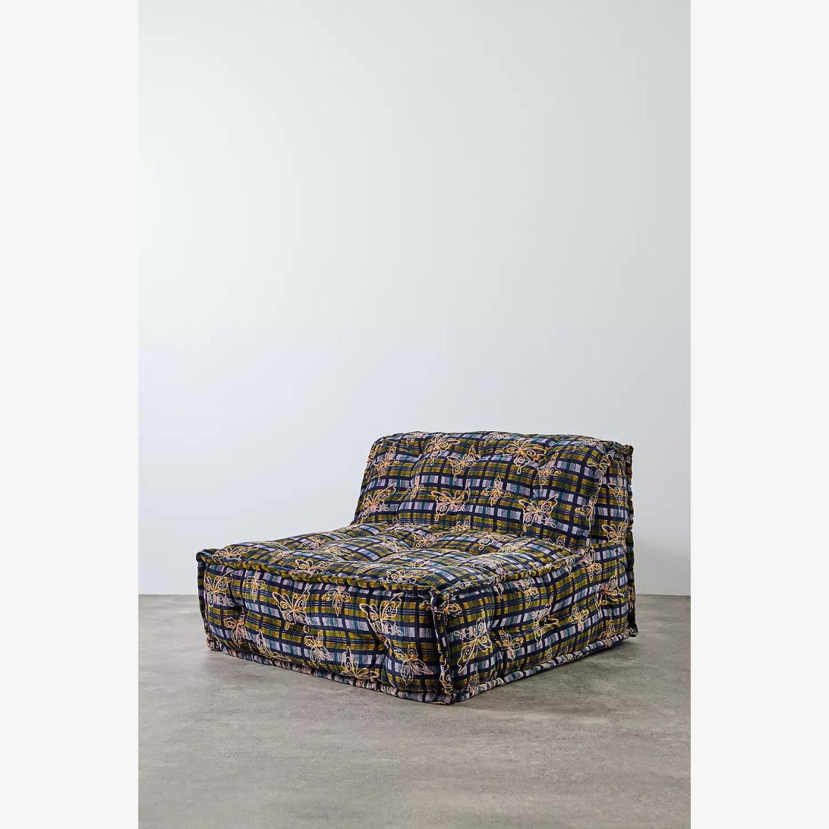 Add a cosy seating solution to your space with the super-casual Reema floor cushion. This soft velvet cushion features a curved back, a solid rectangular base and pintucked details throughout, perfect for two to sit. *Online return only. This item cannot be returned instore. Please note furniture items currently cannot be shipped to Northern Ireland or The Republic of Ireland. Delivery of large furniture items may take 1-2 weeks and are therefore not eligible for Next Day Delivery.* **Content + Care** \- Cotton velvet with polyfiber filling \- Spot clean **Size** \- Dimensions: 101.5cm x 101.5cm x 61cm \- Shipping container: 132cm x 101.5cm x 76cm