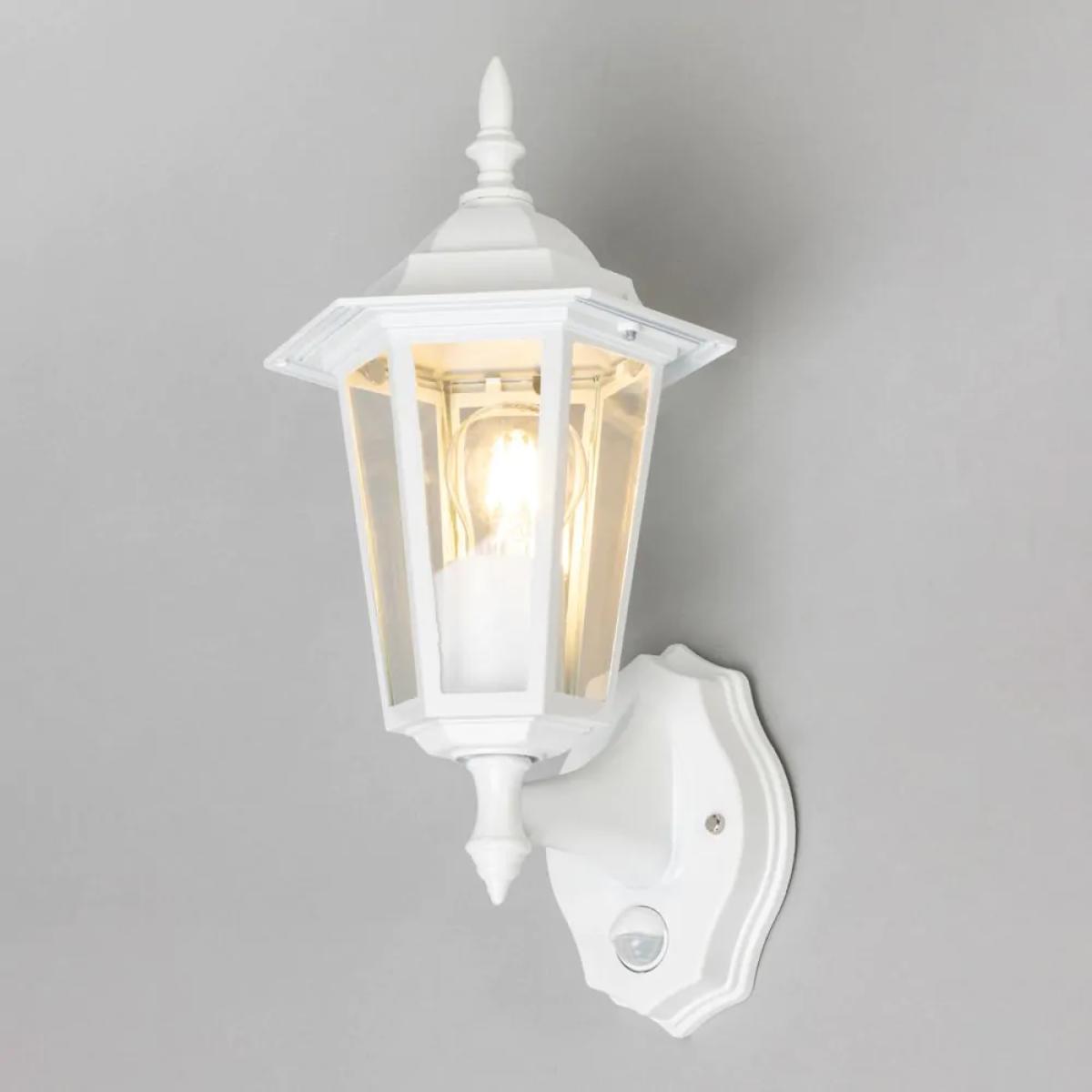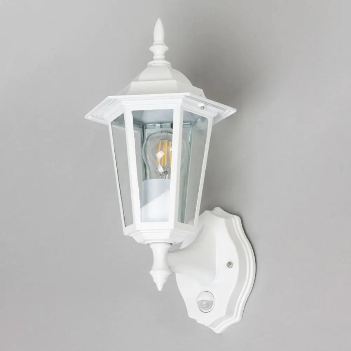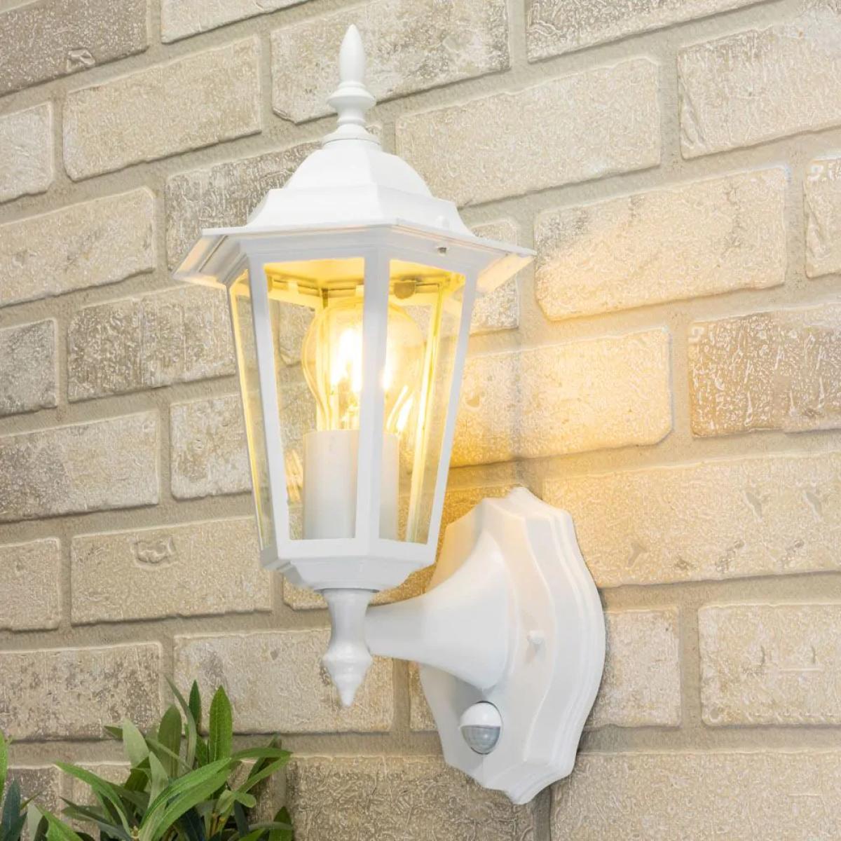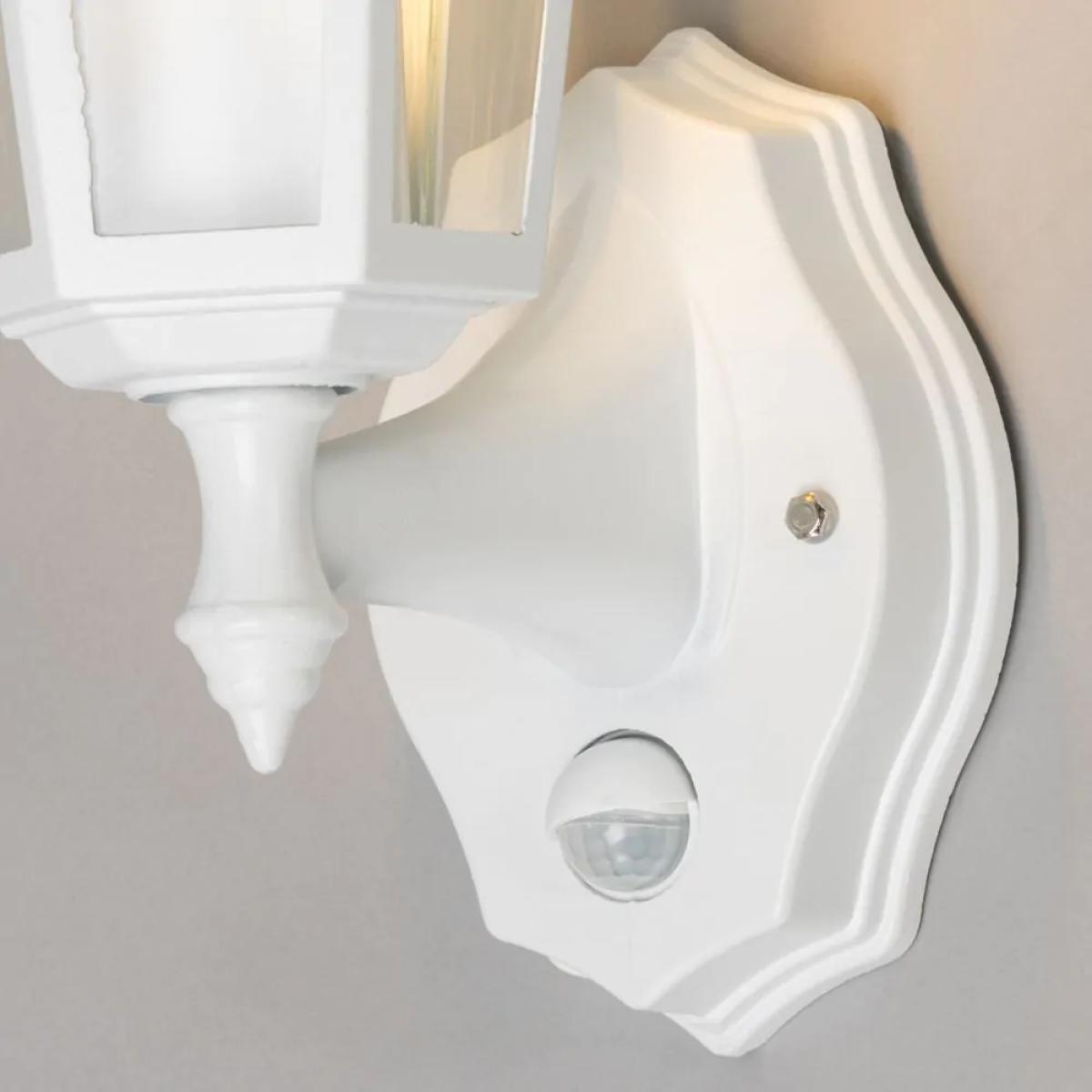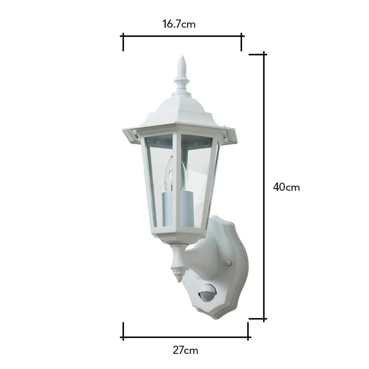 Bring an added security feature to the outside of your home with the Reeta Outdoor Lantern Wall Light with PIR Sensor. This lantern has a traditional design that looks ideal when paired with a separately sold vintage filament light bulbs, and comes IP44 rated for water resistance. It also has a sleek white finish that blends seamlessly with white walls and doors, and features an innovative PIR motion sensor which detects movement outside of you house and triggers the light to turn on instantly.