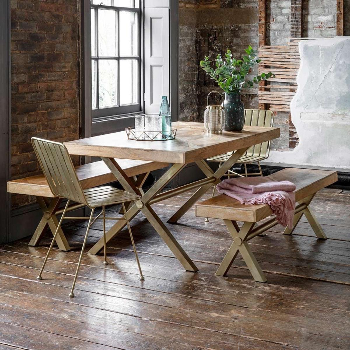 Perfect for open-plan kitchen-diners as well as large dining rooms, kitchen extensions and sun rooms, our Reeves Dining Table is right on trend with its natural mango wood finish and brass-plated legs. The trestle-style design creates plenty of space for seating, whether formal chairs, stools or benches that can easily and quickly be slotted underneath. A matching Reeves bench is also available.
