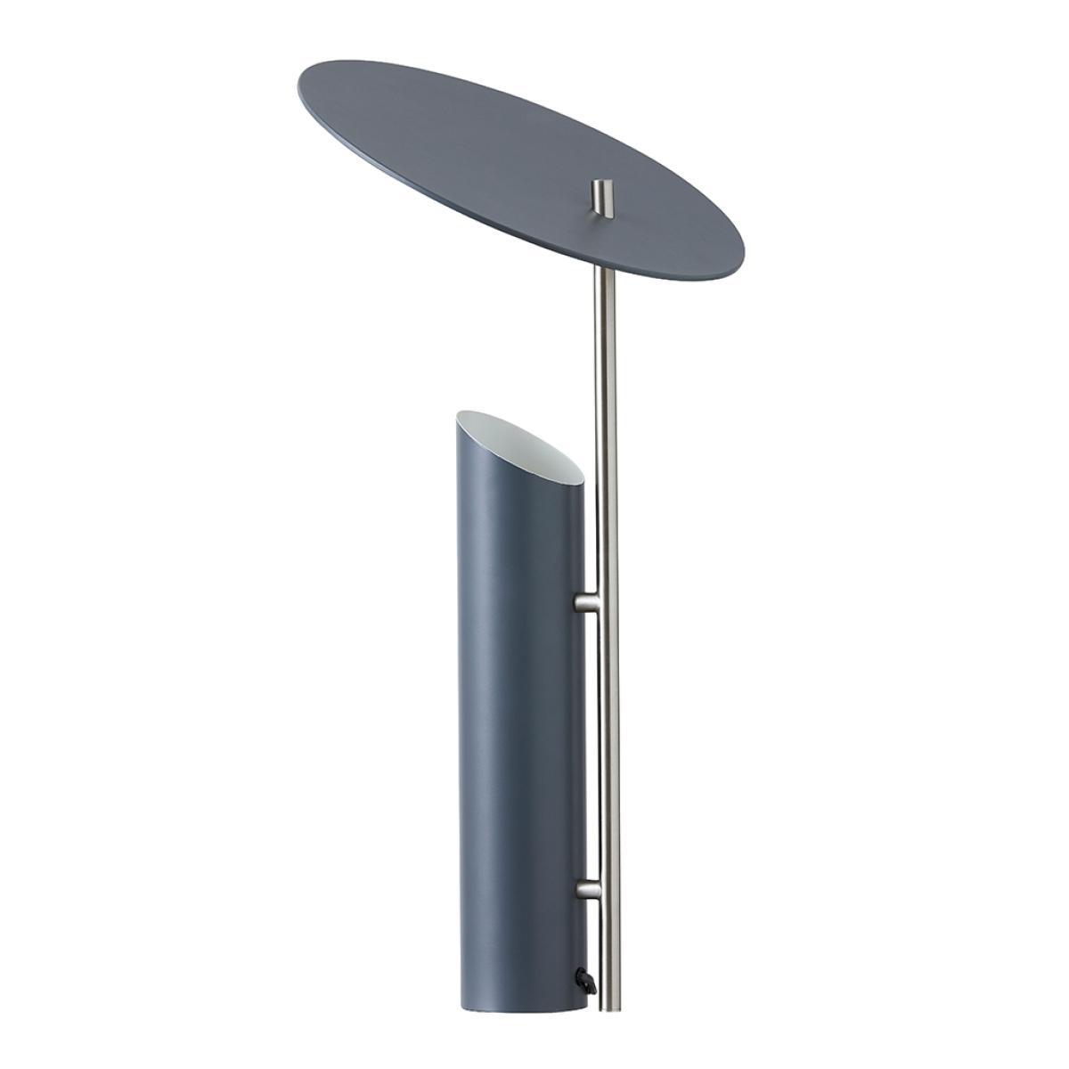 The inventive red Reflect Table Lamp was originally designed by Verner Panton in 1980 and is manufactured by his design house, Verpan. Crafted entirely from steel and powder coated in grey, it is characterised by a slanted disc shade which optimises light distribution. Completed with a black fabric cord, it's the ideal finishing touch to contemporary offices and reading rooms. Gifted with a unique sense of colour, shape and light, Verner Panton is renowned across the globe as one of Denmark's most influential designers. Boldly creating furniture and lighting that was completely unlike the work of his contemporaries, Panton's designs are housed in collections at New York's MoMA, Copenhagen's Danish Museum of Art and Design and the Design Museum in London. Requires: 1x max. 60W E14 bulb (not included).