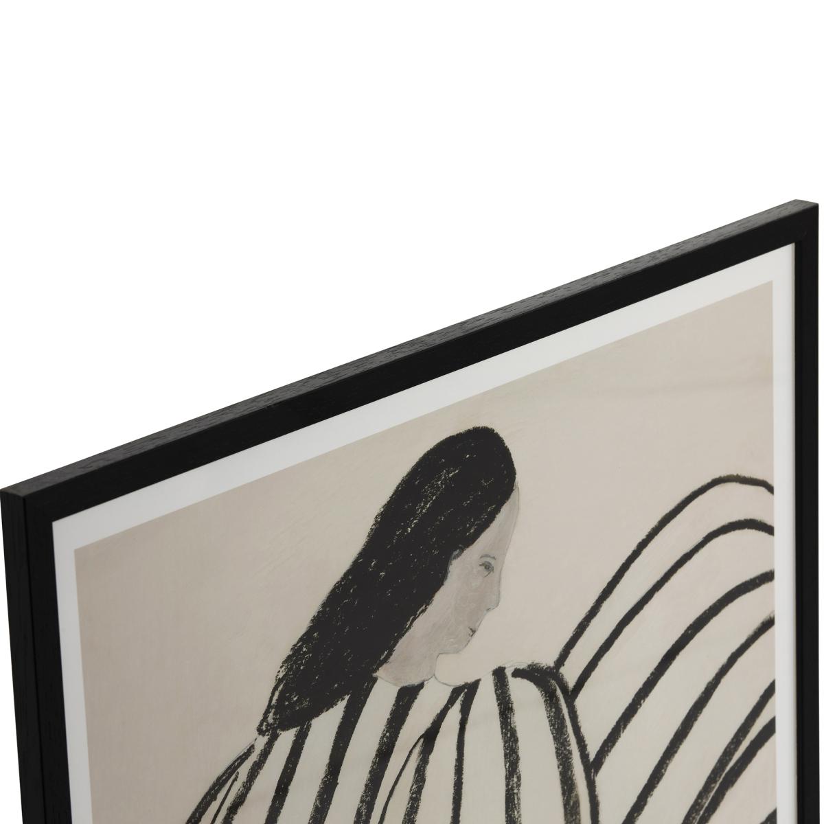 I love this print for its clean, modern aesthetic and versatile monochrome palette, making it easy to incorporate into a variety of interiors. It works particularly well in minimalist, Scandinavian, or contemporary spaces, where its bold lines can serve as a focal point or complement simple colour schemes. Practical styling tips include pairing it with light wood or matte black frames to enhance its modern feel, and placing it above a neutral sofa or sideboard to create visual interest. This piece's understated elegance makes it suitable for living rooms, bedrooms, or even entryways - it’s a stylish yet subtle addition that can elevate a range of interior styles.