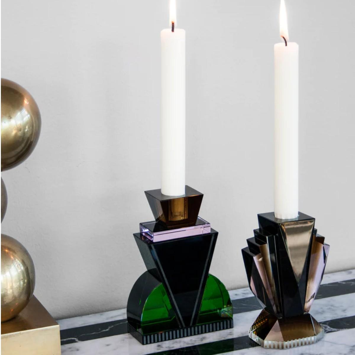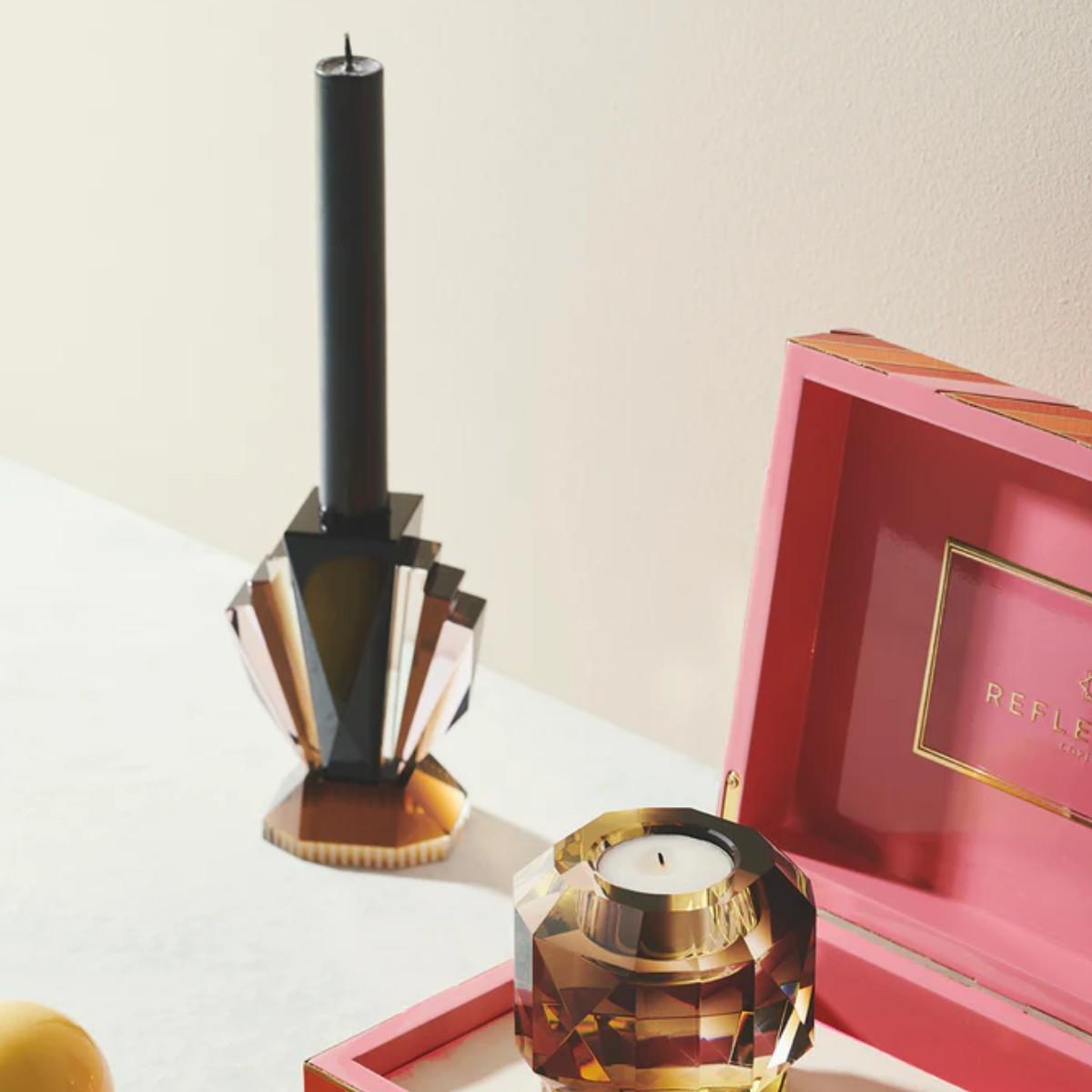 I love the Brooklyn Candle Holder for its striking Art Deco-inspired design, which adds a touch of glamour and sophistication to any space. It's versatile enough to work well in contemporary interiors, especially those with bold, geometric or metallic accents, but it can also bring a luxe edge to more minimalist or eclectic styles. For styled displays, consider placing it as a statement piece on a mantel or side table, paired with contrasting textures like velvet or marble to highlight its reflective surfaces. Practical tip: use it with tapered candles for heightened visual impact, and ensure it’s placed where it can be admired as a sculptural focal point, rather than hidden among other accessories.