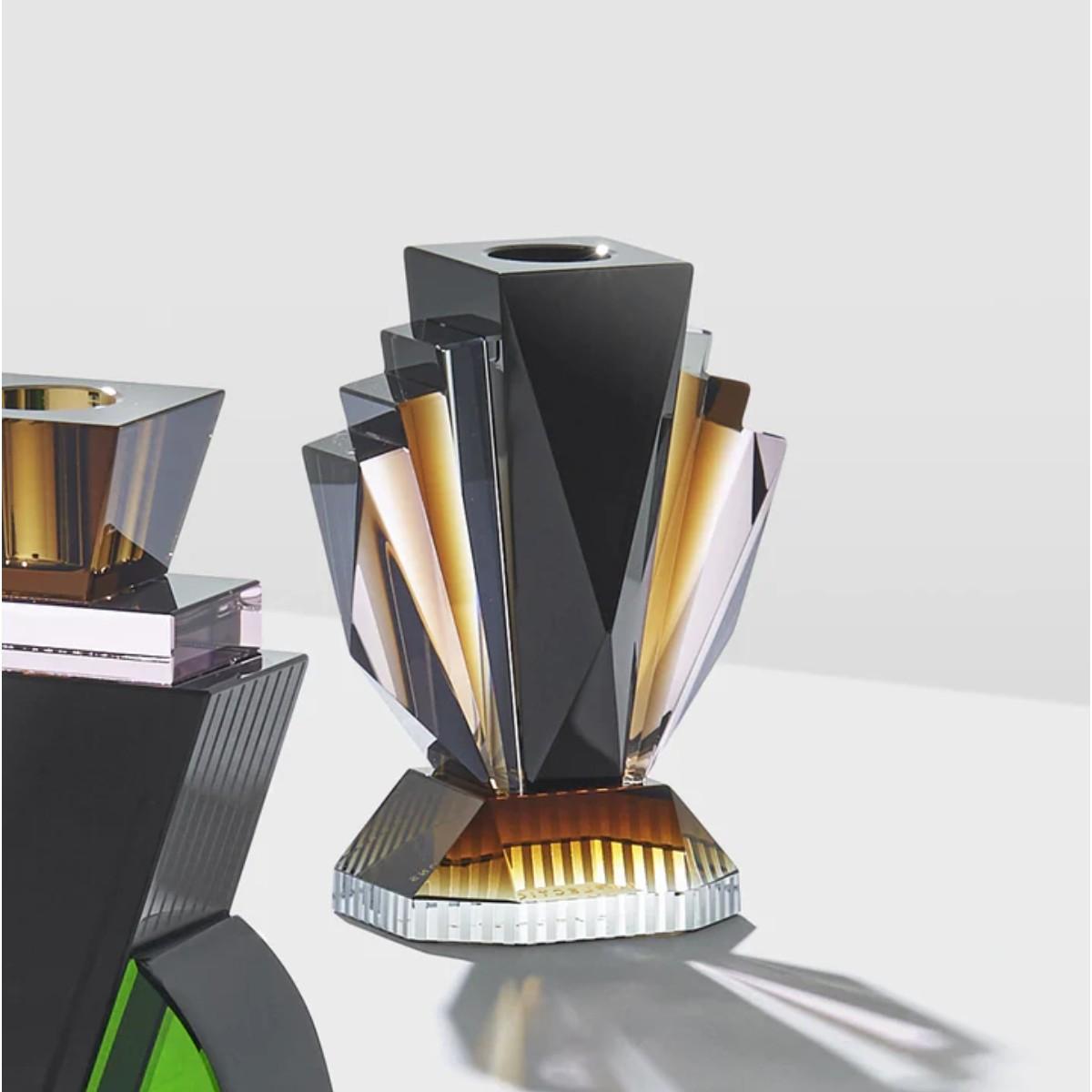 The designers at Reflections Copenhagen have been inspired by Art Deco architecture and skyscrapers of the New York skyline. The Brooklyn candle holder is made from hand-cut crystals with layered side wings in coloured crystal and set on a faceted base. This unique and elegant piece is ideal anywhere in your home. For an added visual effect, Reflections Copenhagen suggest you mix it with the Queens candle holder.