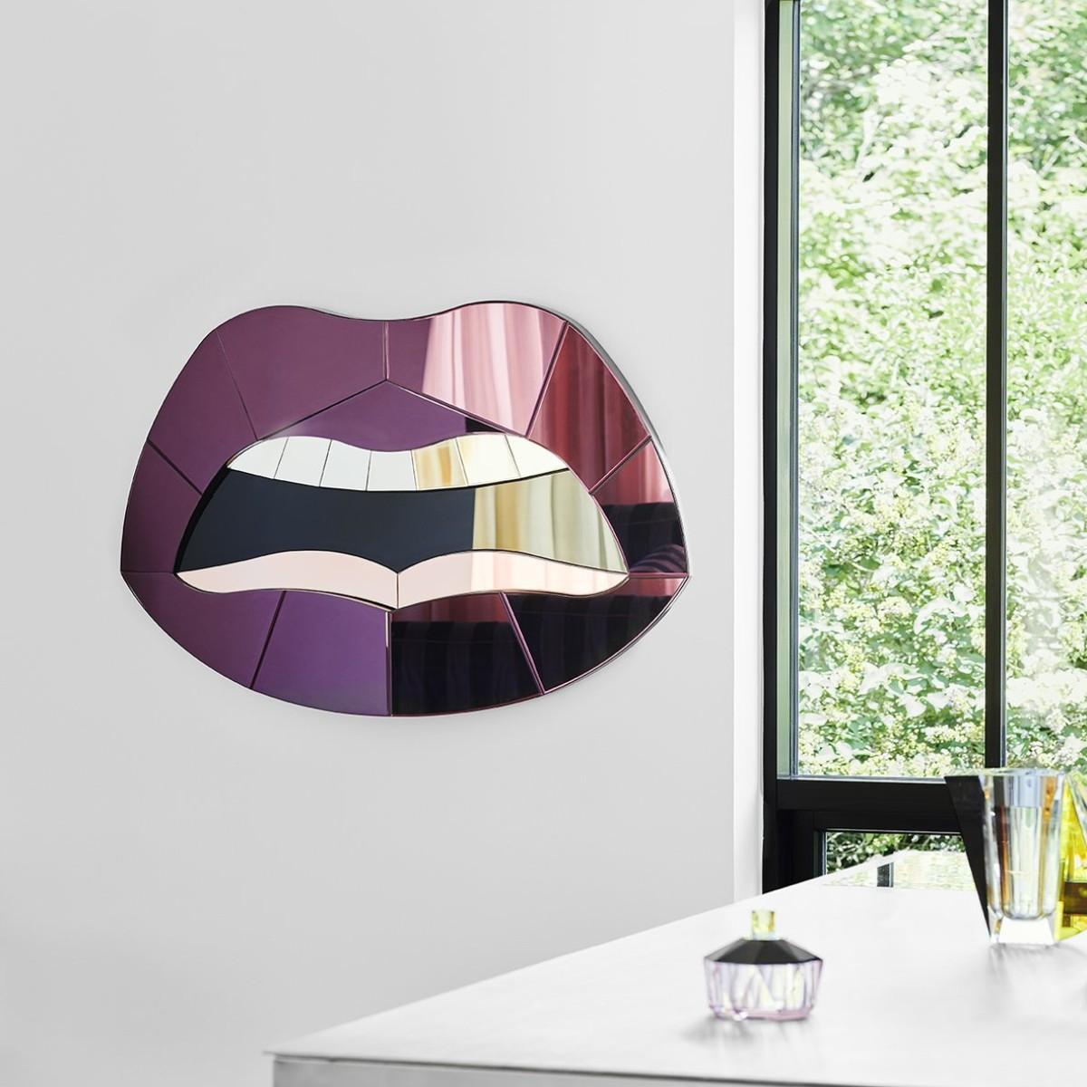 The pop art inspired Mouth mirror is witty, geometric, brightly coloured, and made with hand cut faceted mirror parts – making it possible for it to create a unique dynamic in the room and add a perky energy and liveliness to the space it inhabits. The Mouth mirror addresses the contemporary trends and issues. Presents the strong, yet unrestricted viewpoint when it comes to style.
