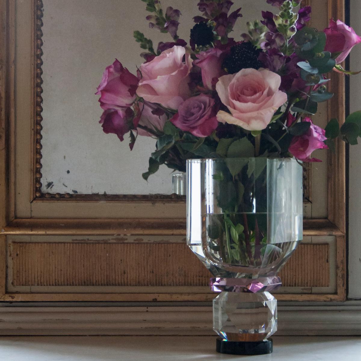 The graceful feminine colour of rose; the darkness of black combined with transparent clear crystal - all harmonised in the creation of the Reflections Copenhagen Utah Vase designed by Julie Hugau & Andrea Larsson. Blending timeless aesthetic with a unique sense of geometric form, the Utah Vase adds an exquisite character to complement any modern space. Both decorative and functional, the vase is a balance of elegance and curiosity, providing a design that is at once subtle and surprising.