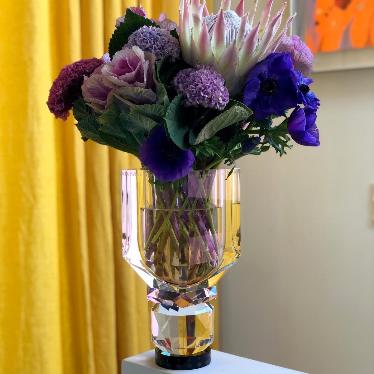 The Copenhagen vase offers a clean, contemporary silhouette that works beautifully in modern and minimalist interiors. I love its bold geometric lines and the way it can serve as a statement piece on its own or paired with slender stems or greenery for an effortless look. It's versatile enough to sit on a sideboard, mantel, or dining table, acting as a focal point. For styling tips, consider pairing it with soft pastel blooms or simple foliage to enhance its sculptural qualities. Its transparent glass allows natural light to play through, adding a touch of elegance without overpowering the surrounding decor.