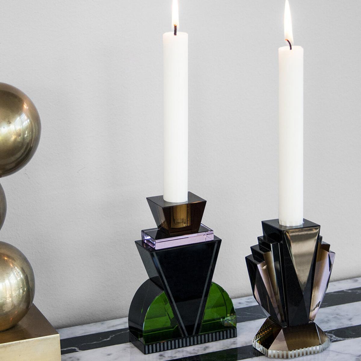 I love this piece for its bold, modern silhouette and striking colour contrast, making it a versatile addition to contemporary interiors. The green and black shades give it a sleek, almost industrial feel, but it can also elevate more eclectic or luxe spaces with the right accessories. It works particularly well styled on minimalist coffee tables, sideboards, or even as a centrepiece on a dining table when paired with other metallic accents. For practical styling, I recommend using it alongside natural textures like wood or stone to soften the look, and placing flames in the candleholder to create charming reflections and ambient warmth without overpowering a room's colour palette.